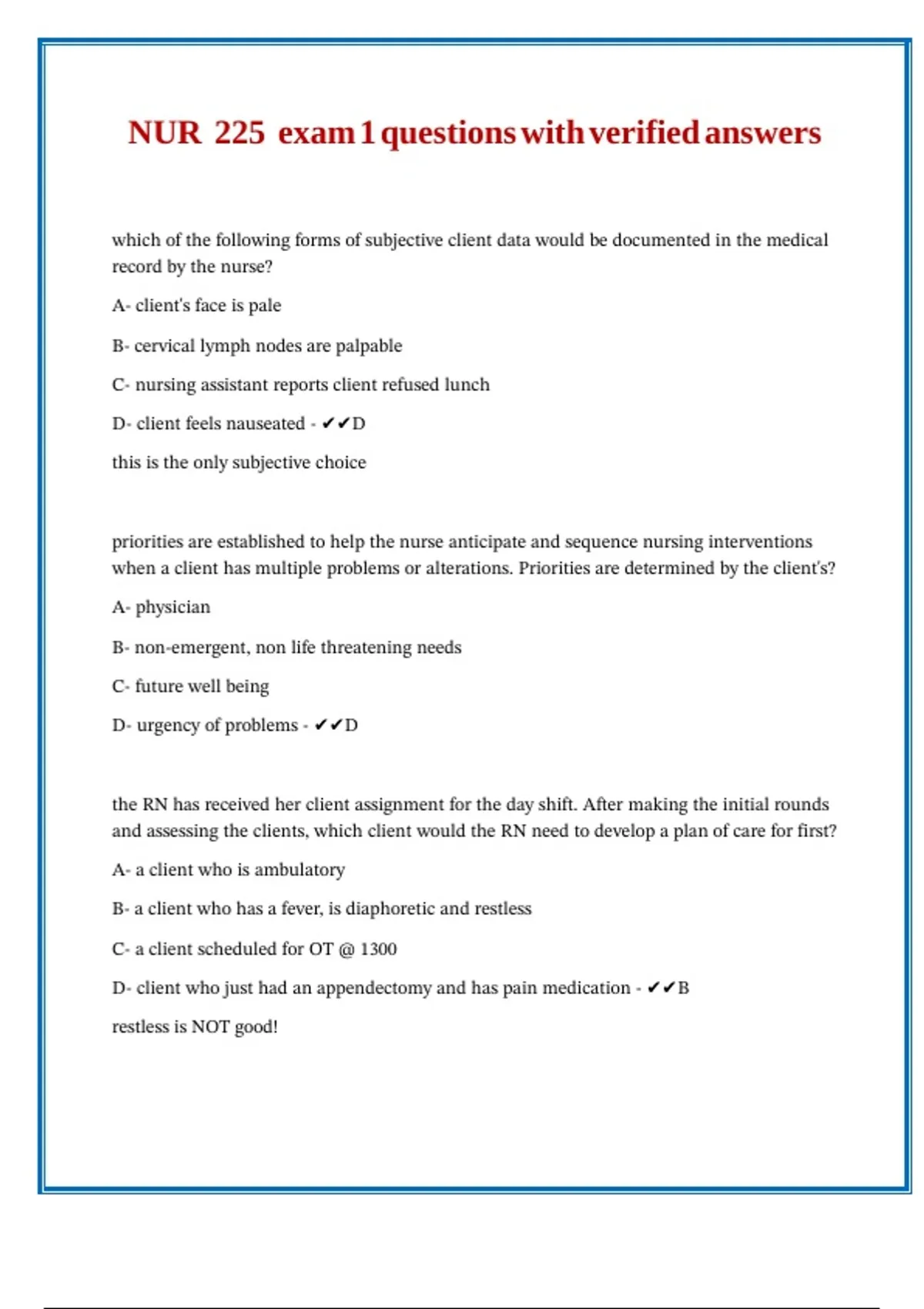 NUR 225 exam 1 questions with verified answers ||//\\|| ||//\\|| ||//\\|| ||//\\|| ||//\\|| ||//\\|| ||//\\||