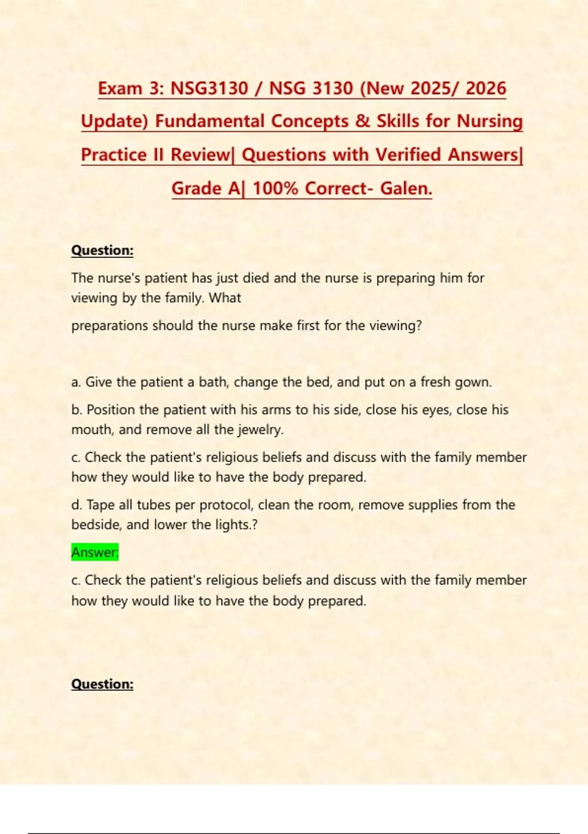 Grade A| 100% Correct- Galen.