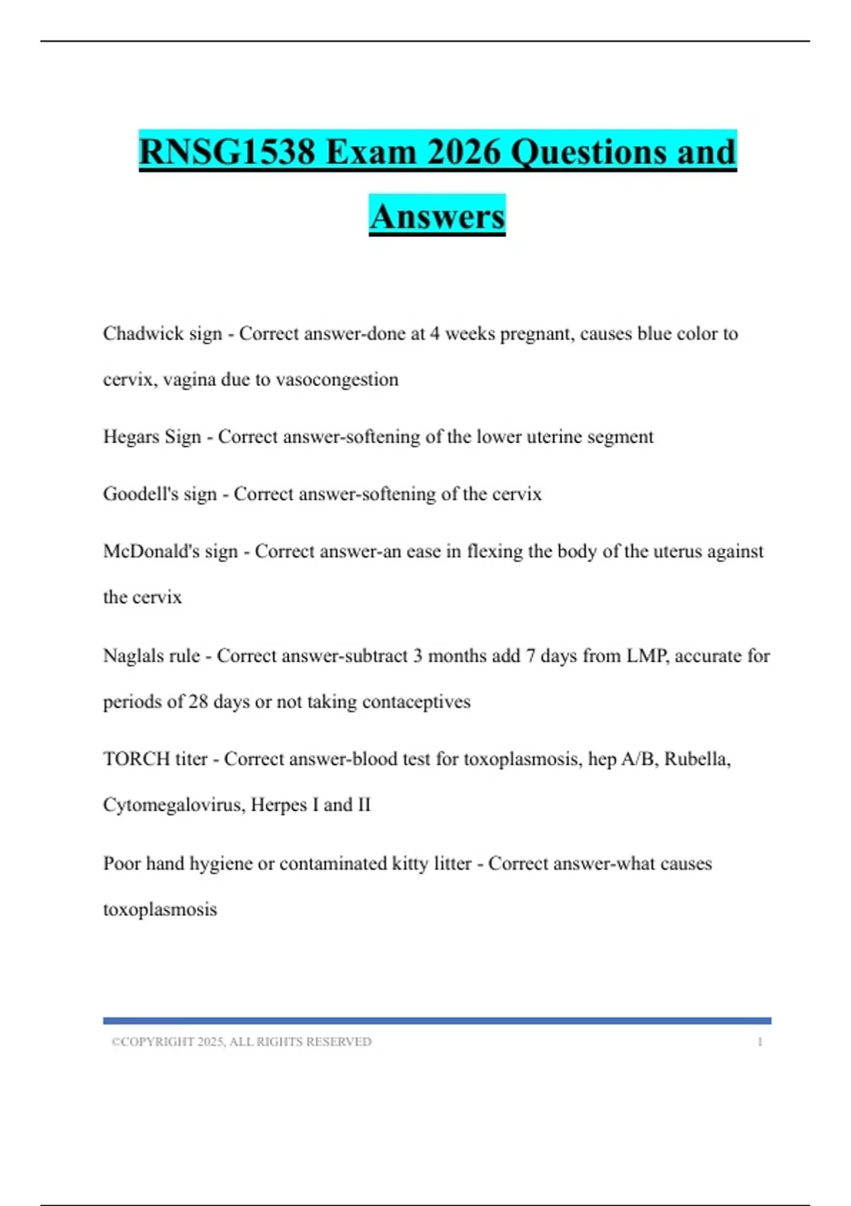 RNSG1538 Exam 2026 Questions and