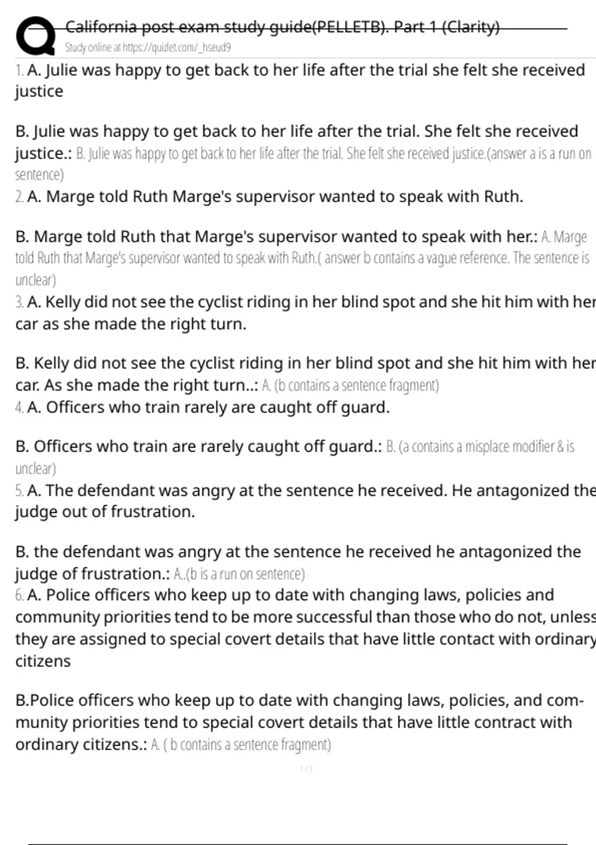California post exam study guide(PELLETB). Part 1 (Clarity) Exam Questions and Answers 100% Pass |Verified and Updated |Graded A+