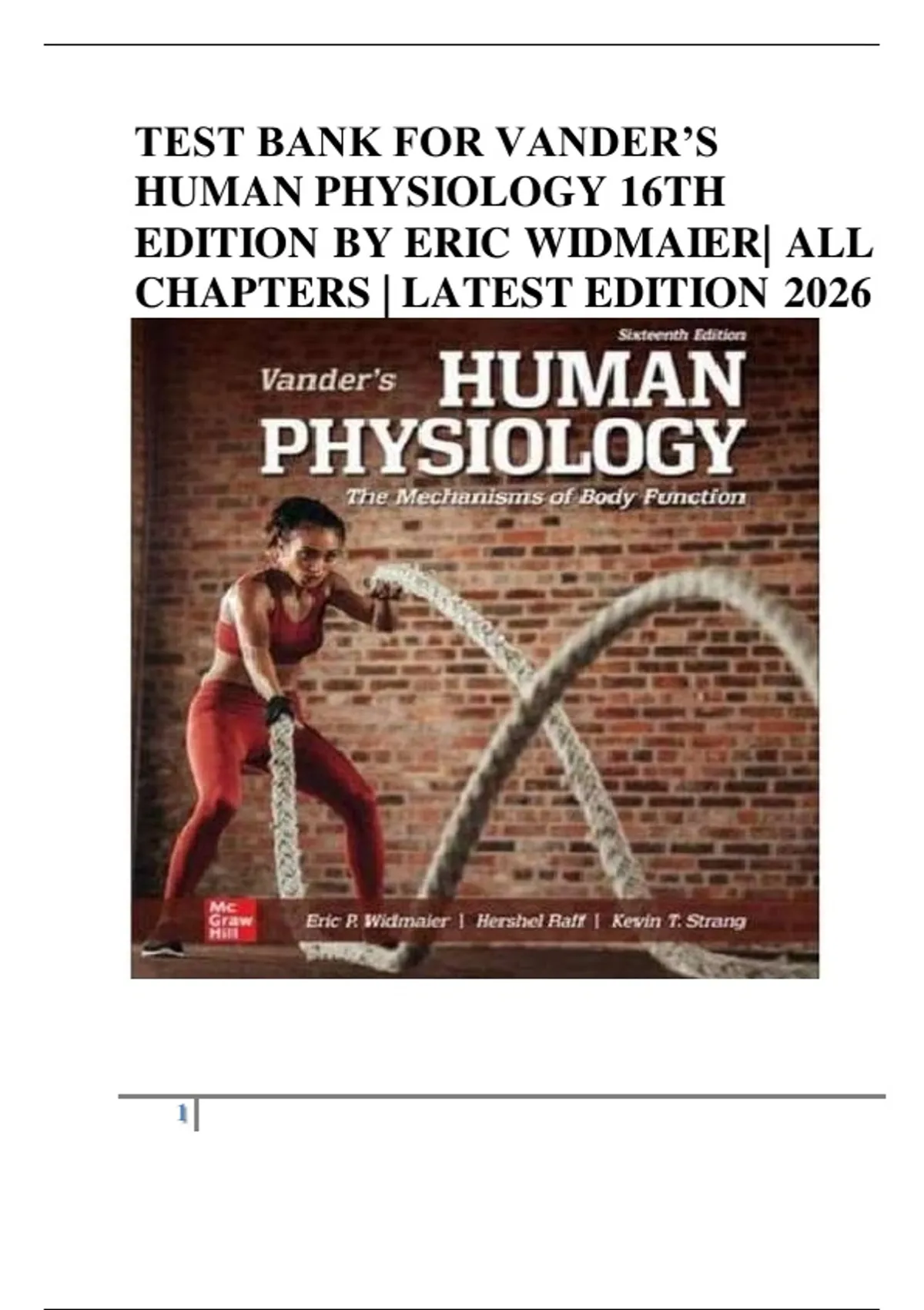 Test Bank For Vander’s Human Physiology 16th Edition By Eric Widmaier| All Chapters | Latest Edition