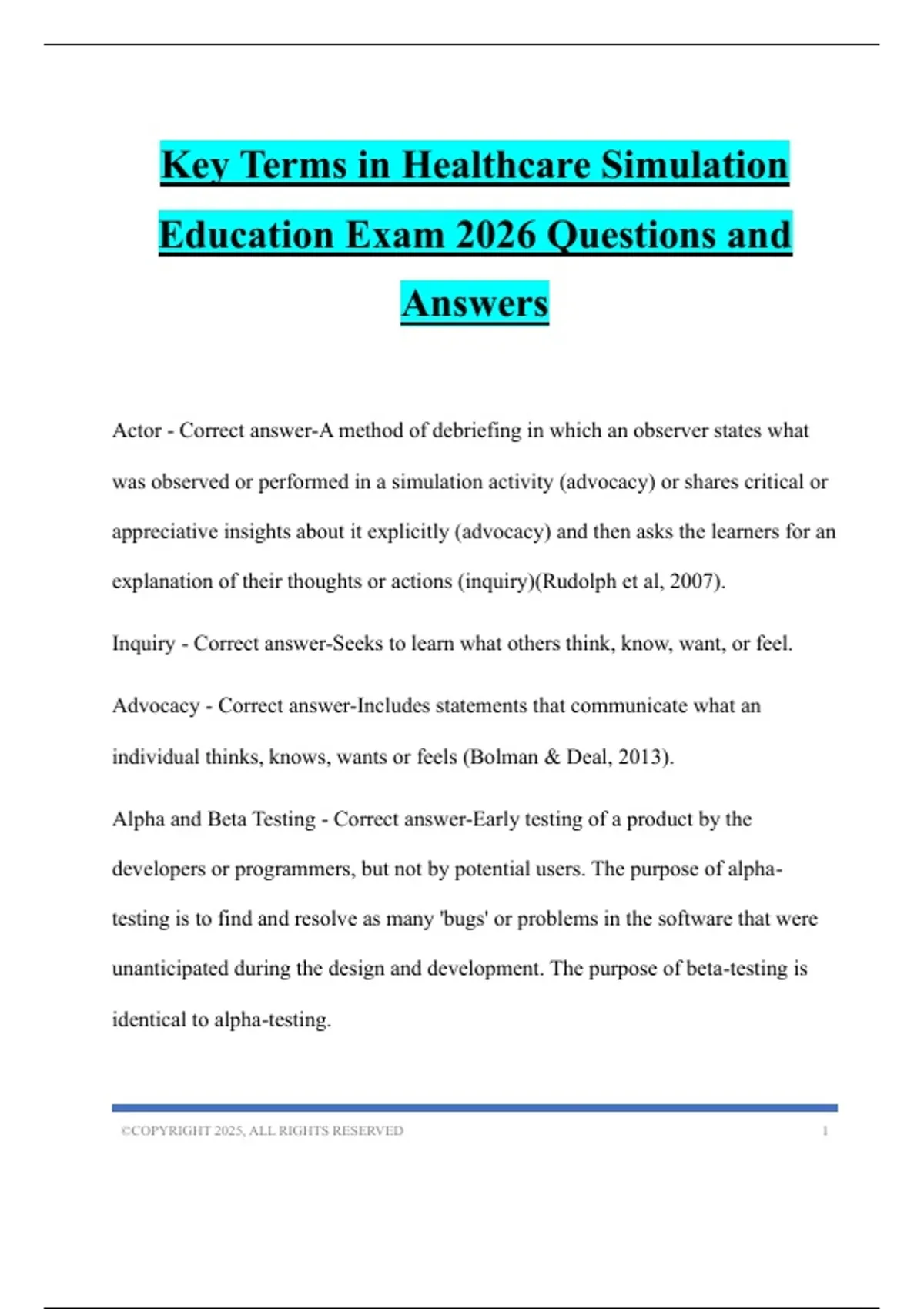 Key Terms in Healthcare Simulation Education Exam 2026 Questions and Answers