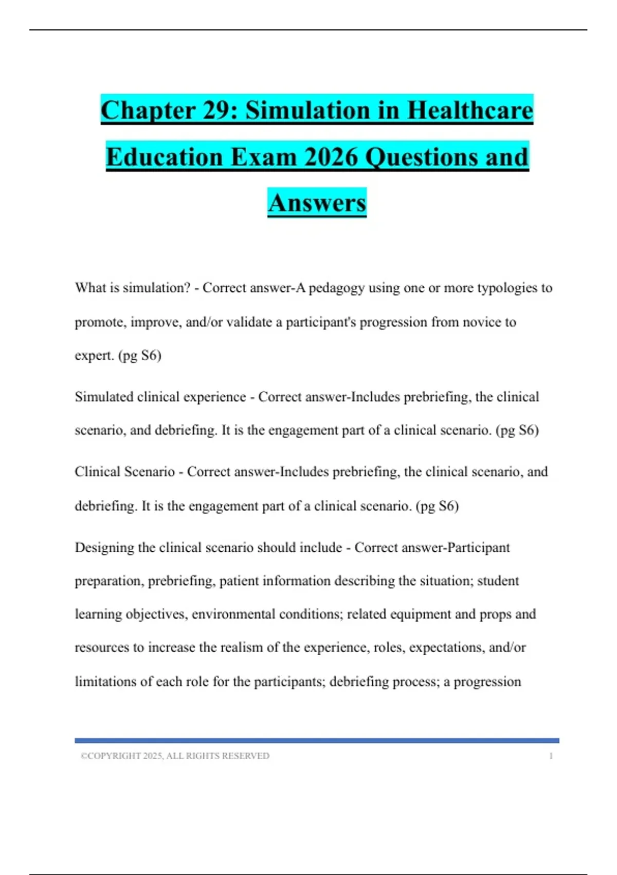 Chapter 29: Simulation in Healthcare Education Exam 2026 Questions and Answers