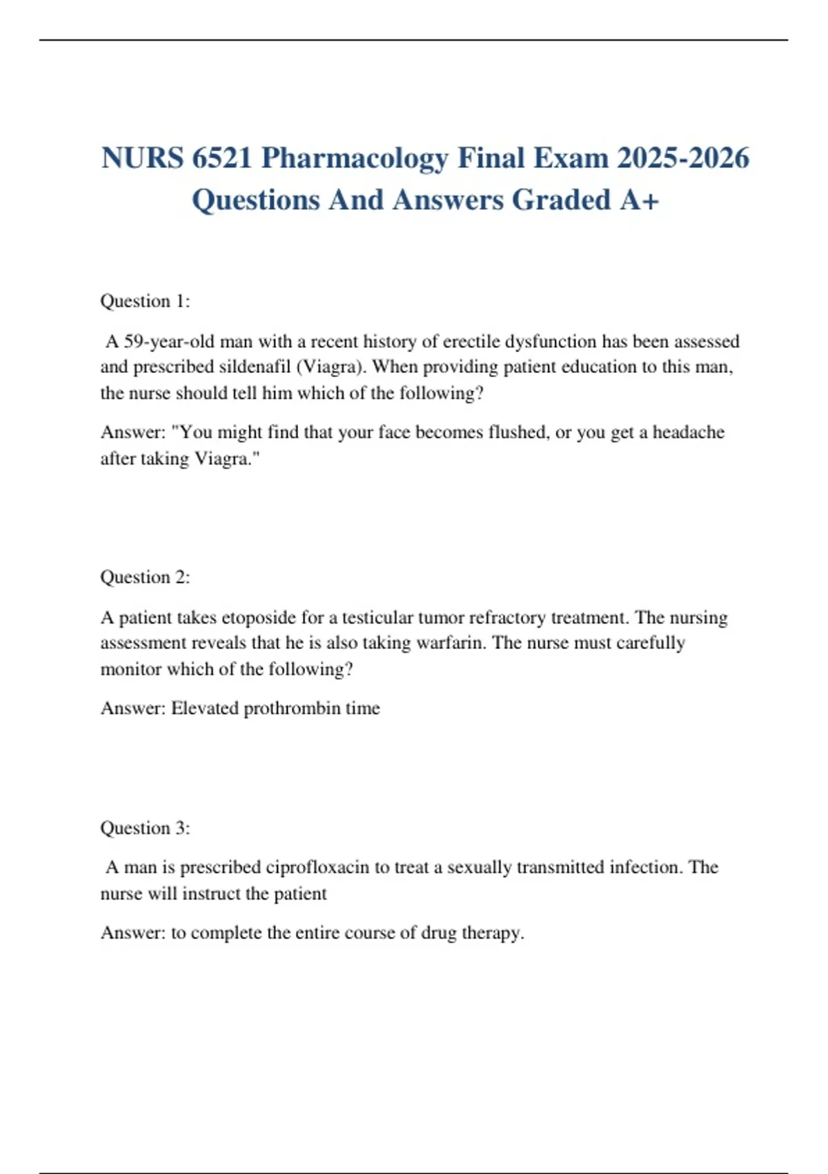 NURS 6521 Pharmacology Final Exam Questions And Answers Graded A+