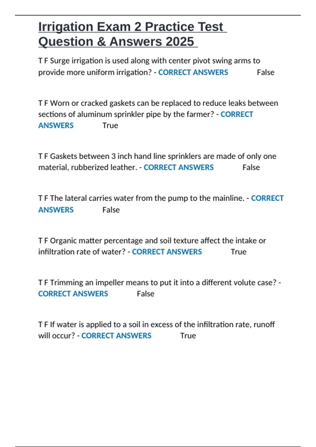 provide more uniform irrigation? - CORRECT ANSWERS ✔✔False