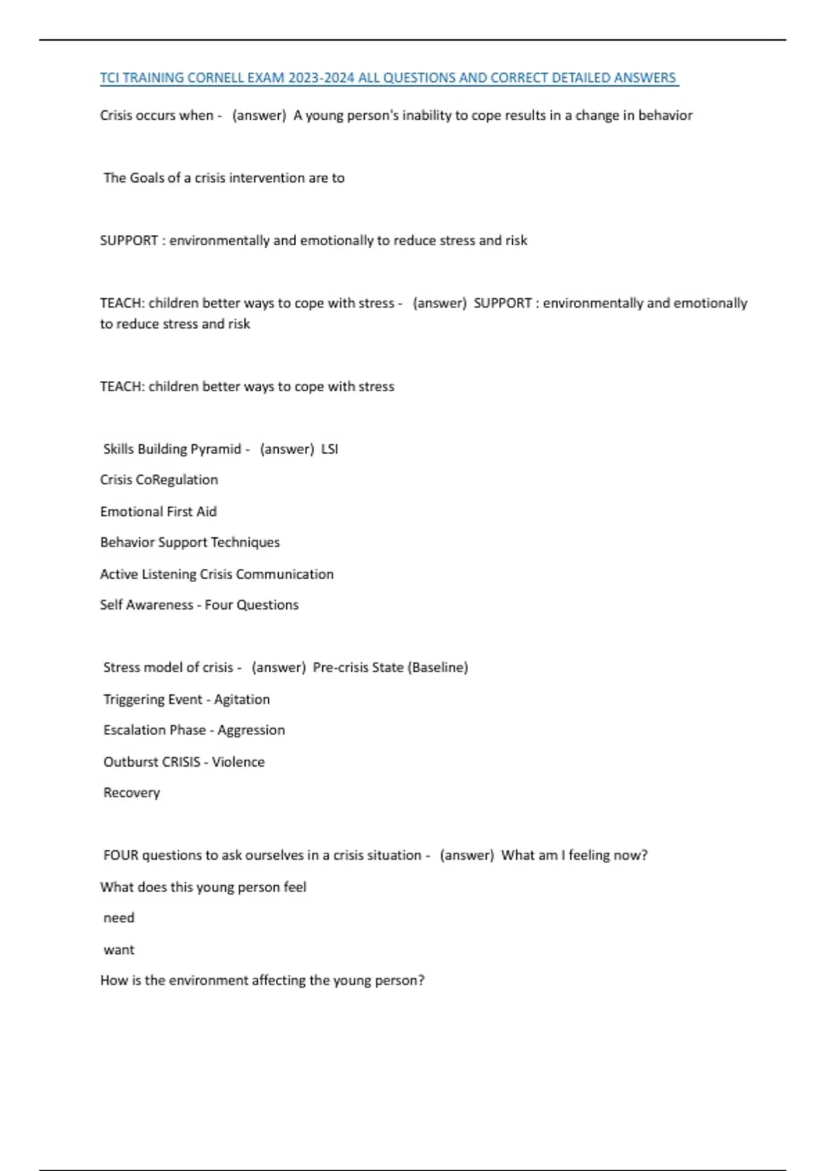 TCI TRAINING CORNELL EXAM 2023-2024 ALL QUESTIONS AND CORRECT DETAILED ANSWERS