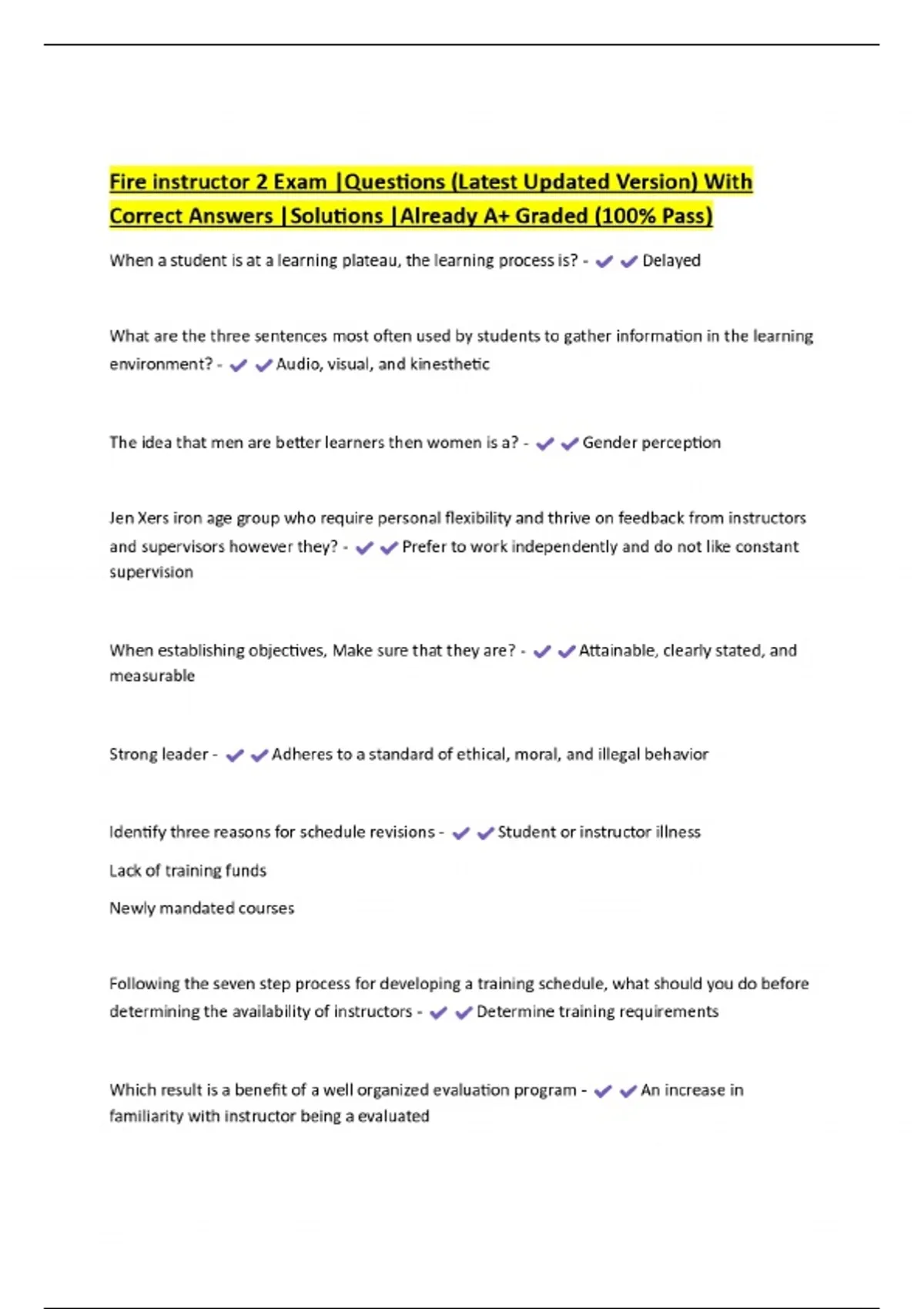 Fire instructor 2 Exam |Questions (Latest Updated Version) With Correct Answers |Solutions |Already A+ Graded (100% Pass)