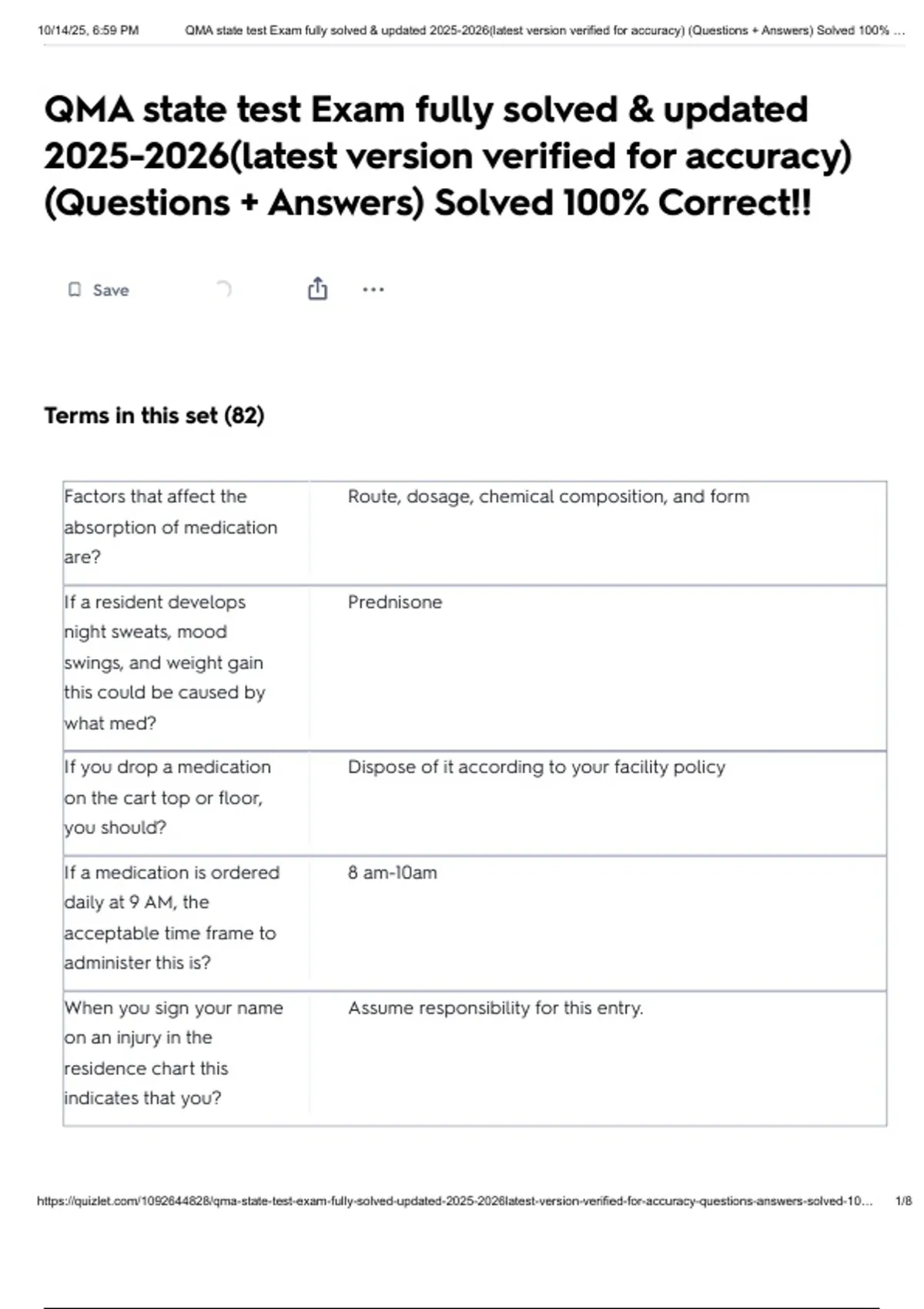 , 10/14/25, 6:59 PM QMA state test Exam fully solved & updated 2025-2026(latest version verified for accuracy) (Questions + Answers) Solved 100% …
