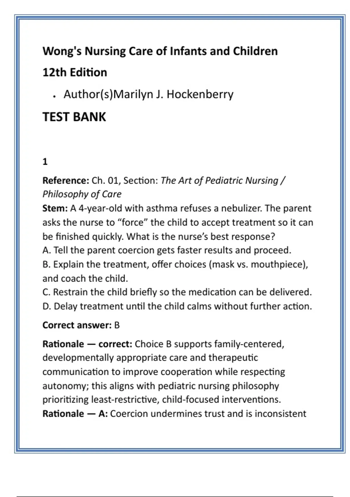 Stem: A 4-year-old with asthma refuses a nebulizer. The parent