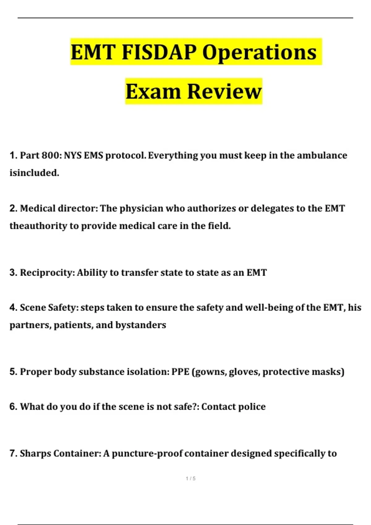 Ace EMT FISDAP Operations Exam | Instant Prep Guide.Boost your EMT FISDAP Operations Exam score instantly with this fully updated review guide! Packed with real scenario-based questions, verified answers, and clear explanations, it’s designed for fast, effective learning. Master EMS procedures, patient safety, and emergency operations with ease. Perfect for both FISDAP and NREMT prep, this guide helps EMT students study smarter, build confidence, and achieve top scores—fast. Don’t wait—get exam-ready now and dominate your Operations Exam with this high-impact, A+ resource!. Instant EMT Operations Exam Prep