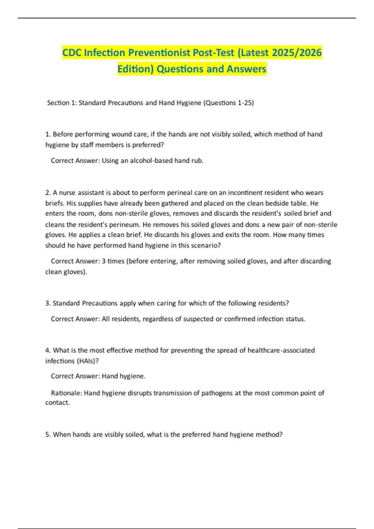 Section 1: Standard Precautions and Hand Hygiene (Questions 1-25)