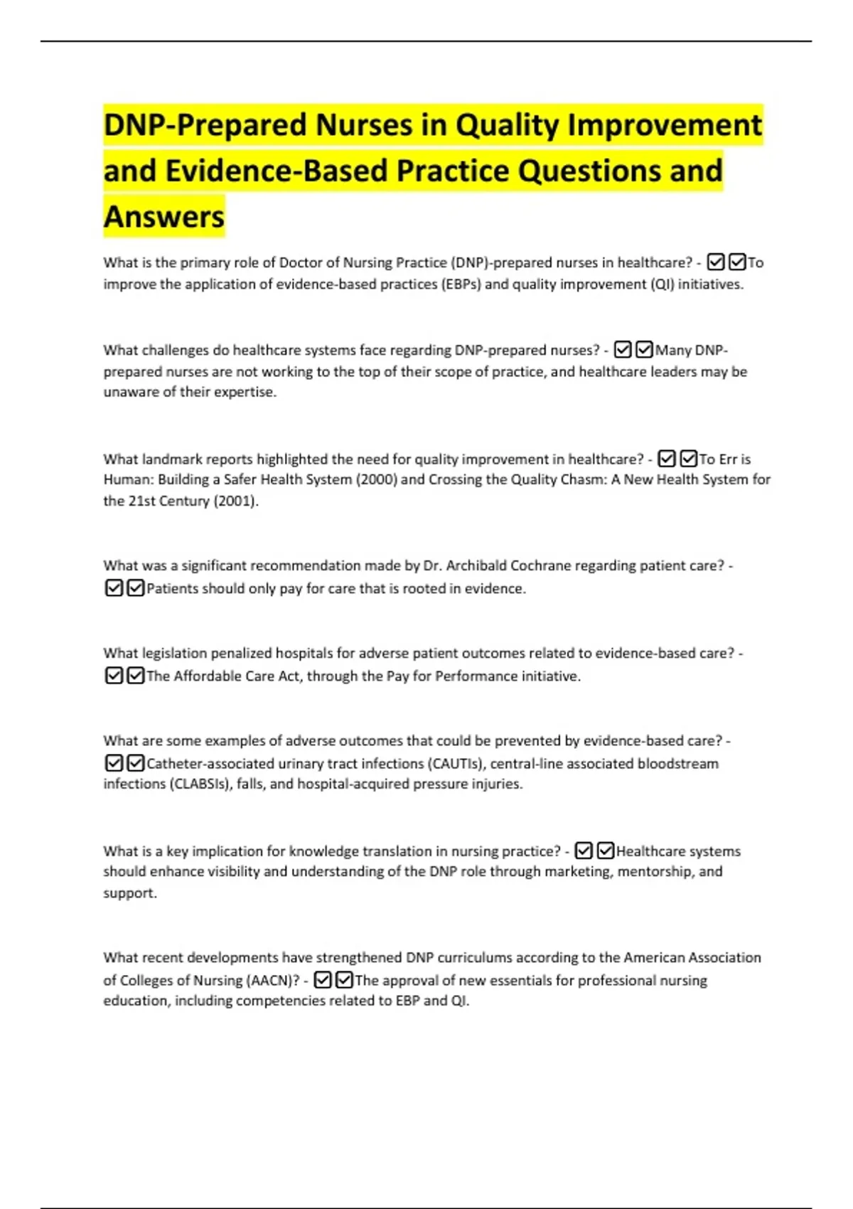 DNP-Prepared Nurses in Quality Improvement and Evidence-Based Practice Questions and Answers