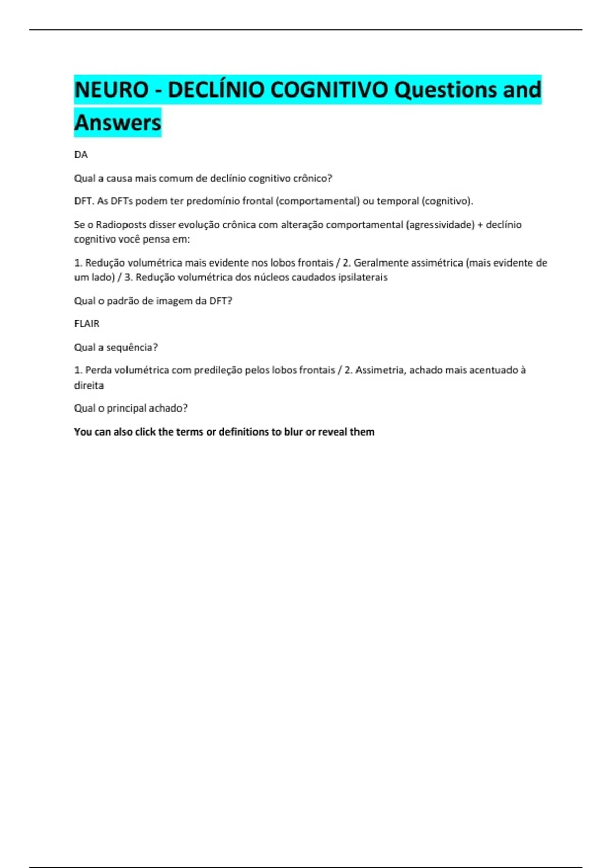 DFT. As DFTs podem ter predomínio frontal (comportamental) ou temporal (cognitivo).