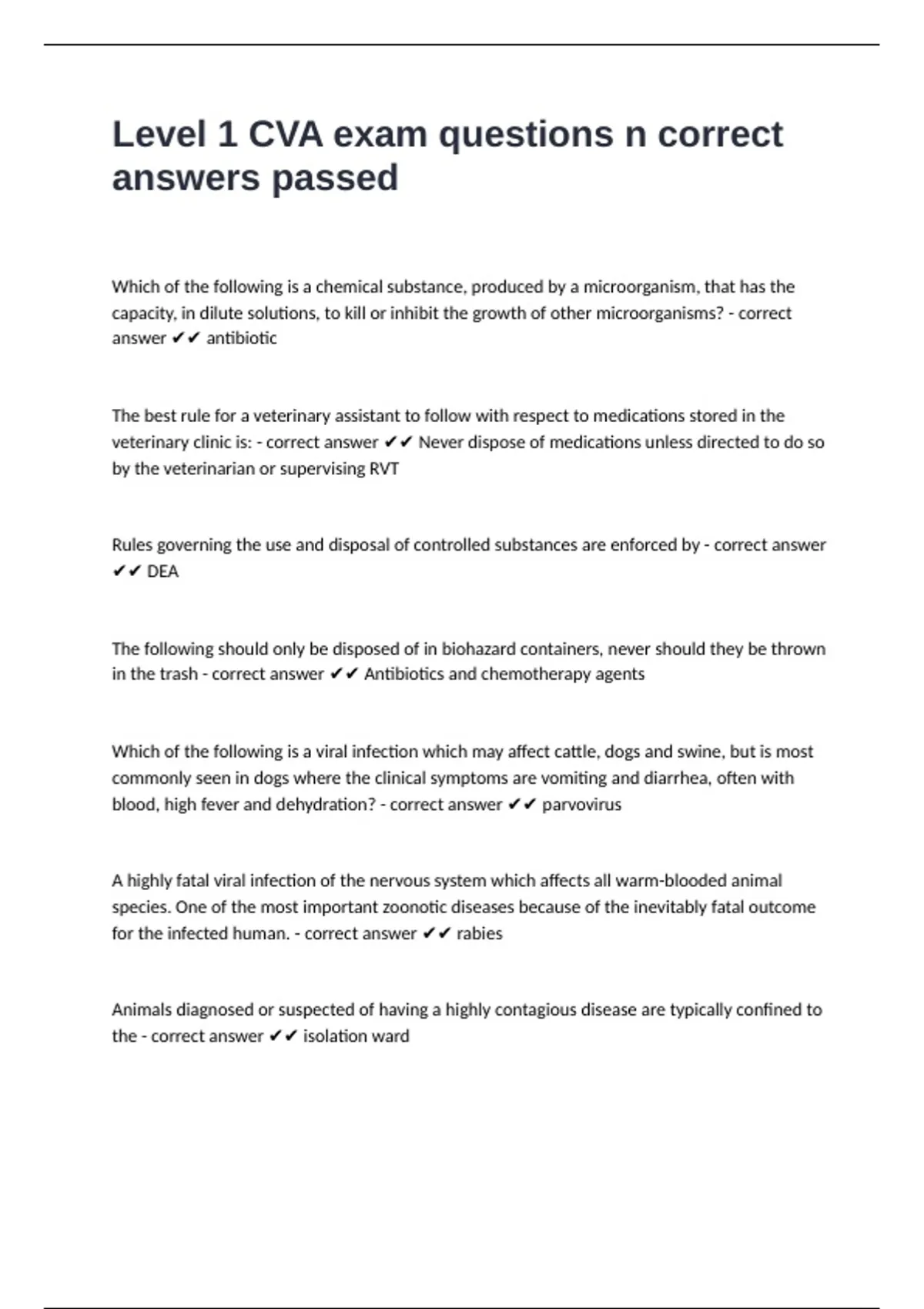 veterinary clinic is: - correct answer ✔✔ Never dispose of medications unless directed to do so