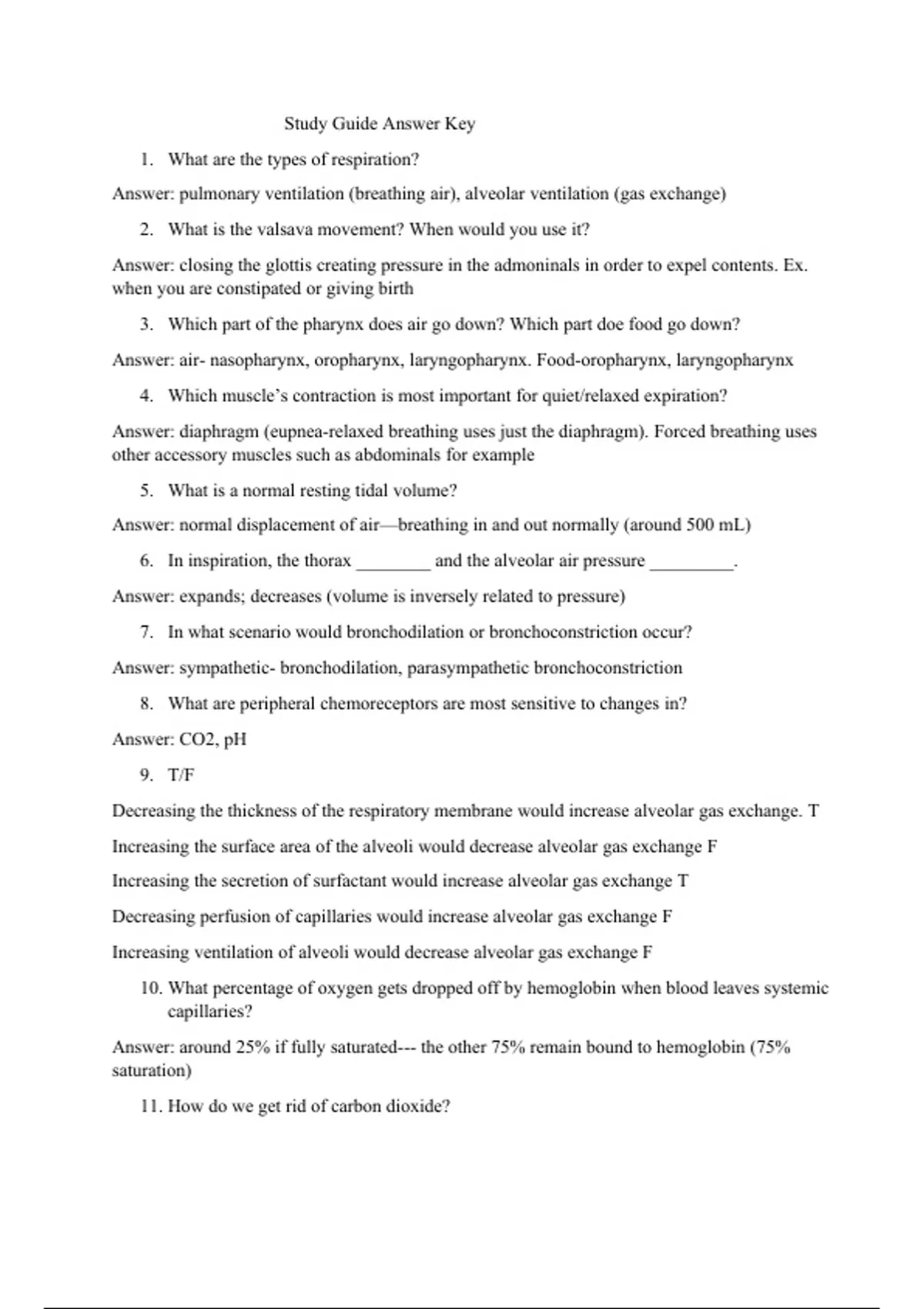 Study Guide Answer Key