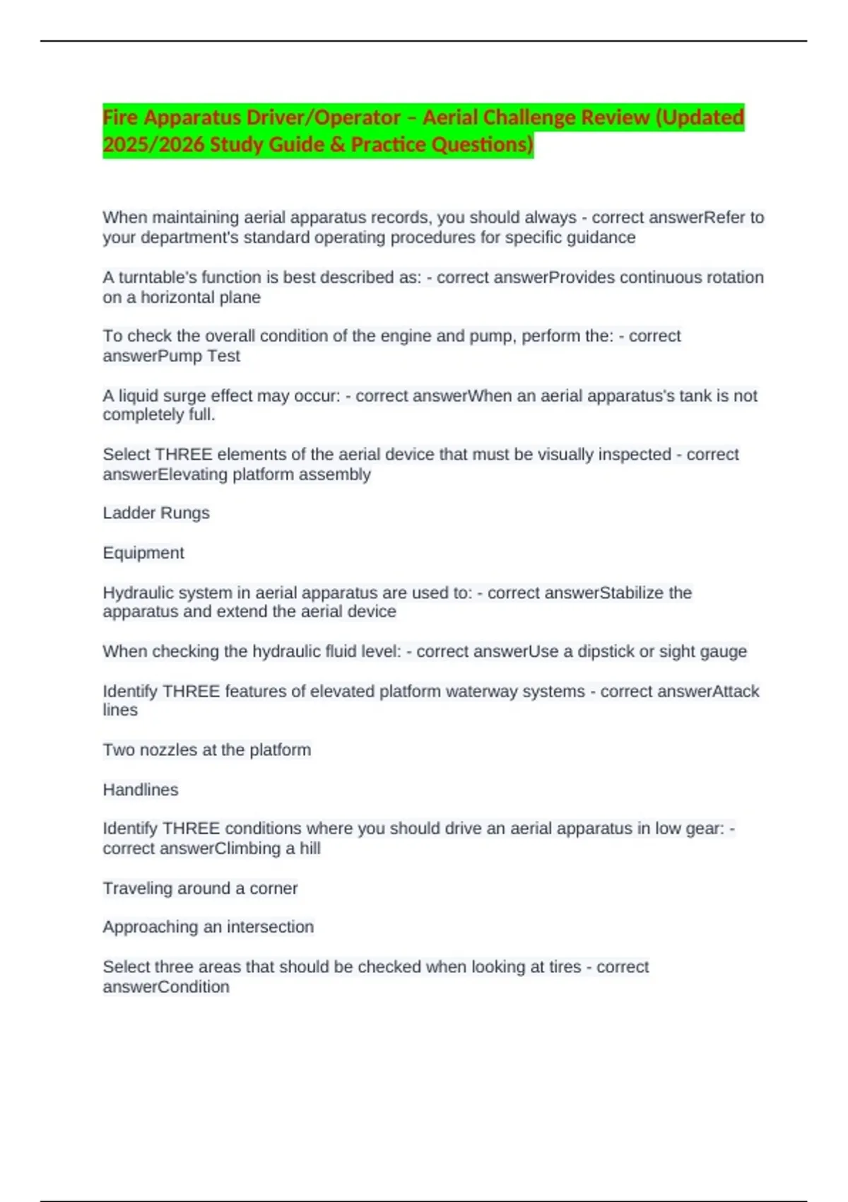 Fire Apparatus Driver/Operator – Aerial Challenge Review (Updated 2025/2026 Study Guide & Practice Questions)