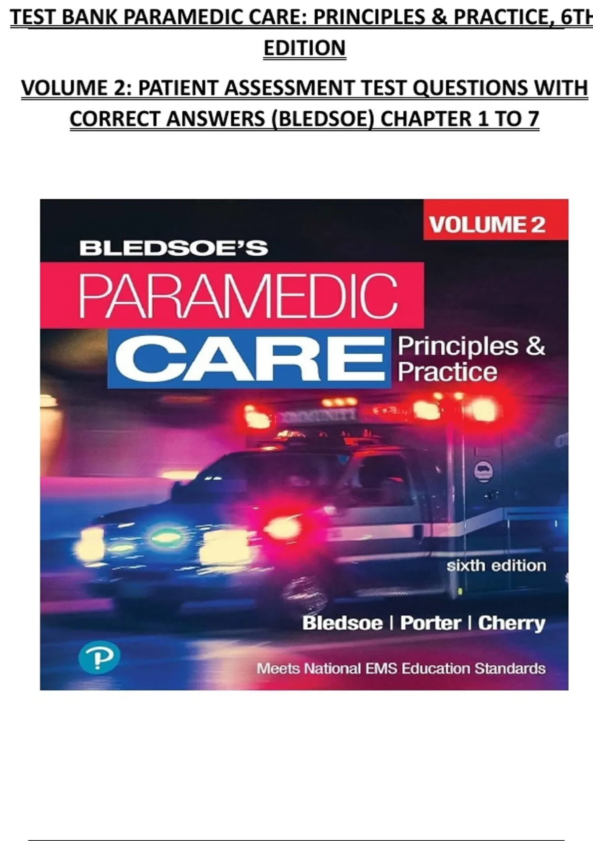 TEST BANK PARAMEDIC CARE: PRINCIPLES & PRACTICE, 6TH