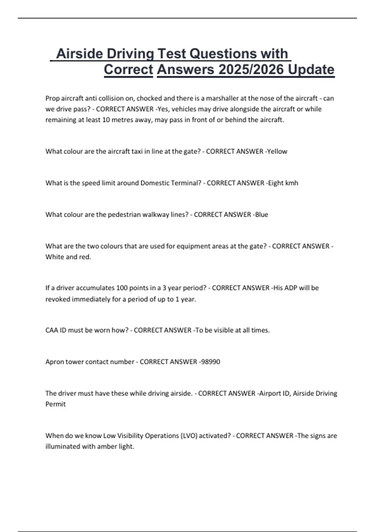 The driver must have these while driving airside. - CORRECT ANSWER -Airport ID, Airside Driving
