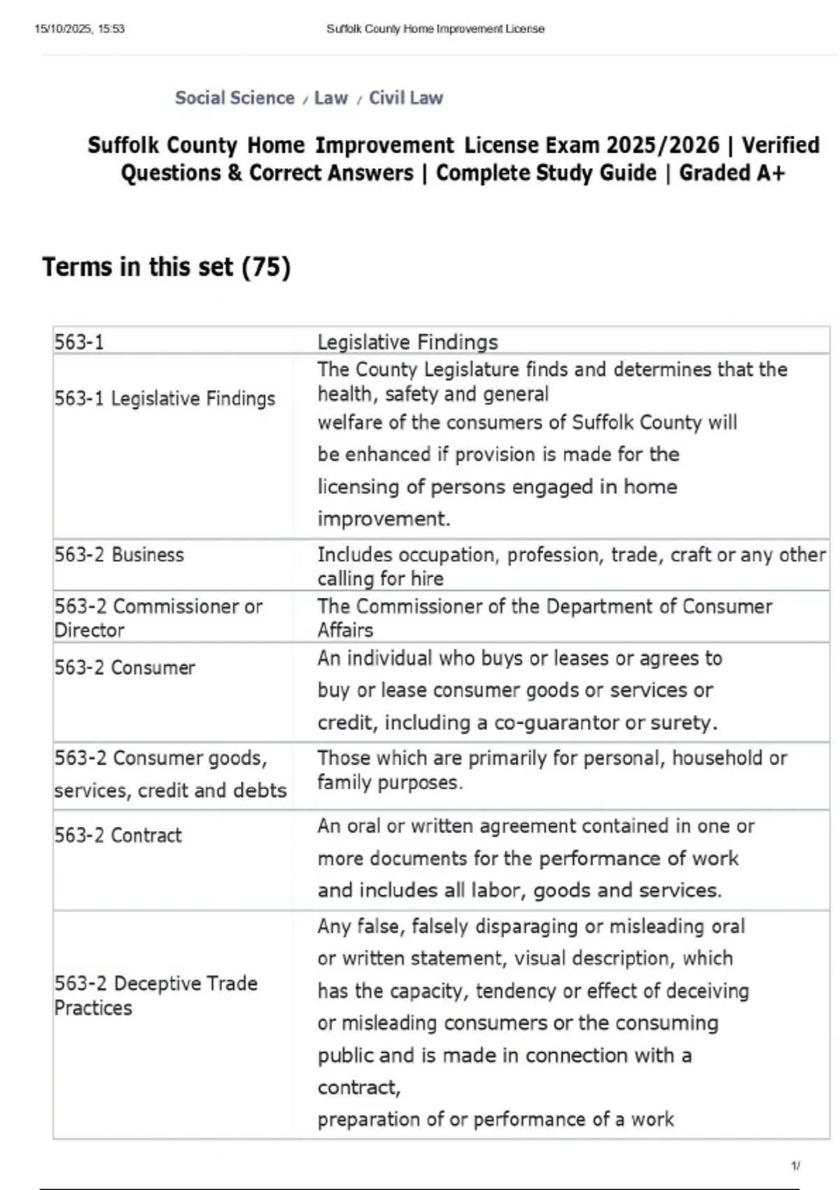Suffolk County Home Improvement License Exam 2025/2026 | Verified Questions & Correct Answers | Complete Study Guide | Graded A+