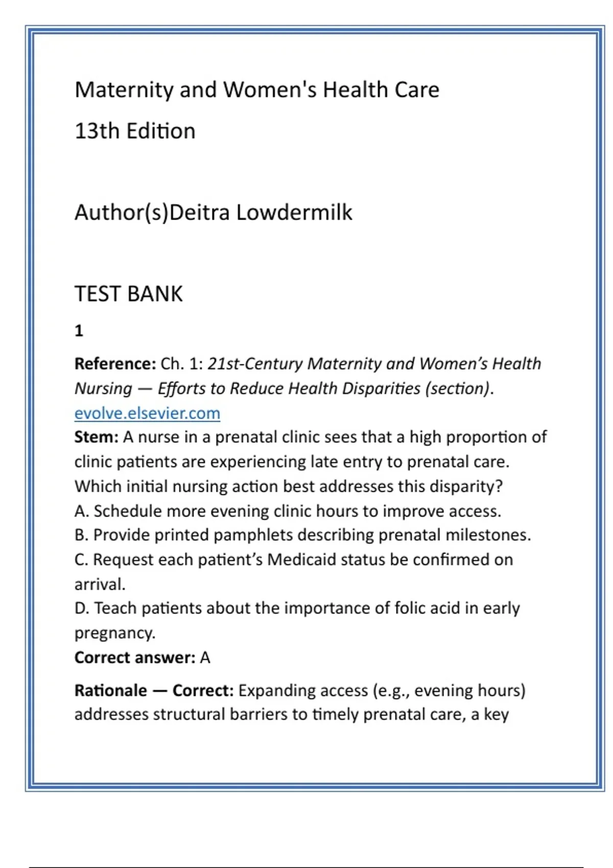 Reference: Ch. 1: 21st-Century Maternity and Women’s Health