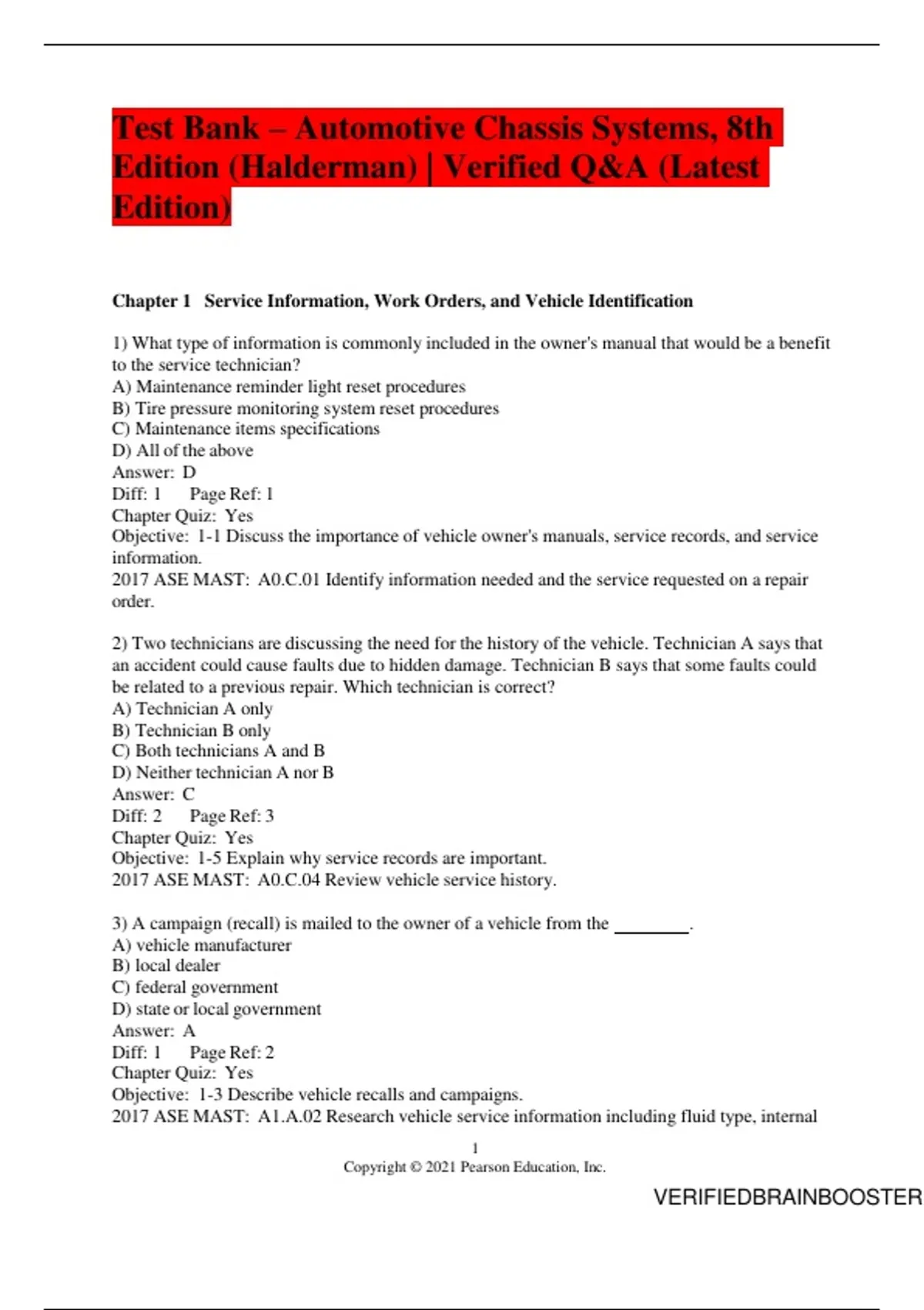 Test Bank – Automotive Chassis Systems, 8th Edition (Halderman) | Verified Q&A (Latest Edition)