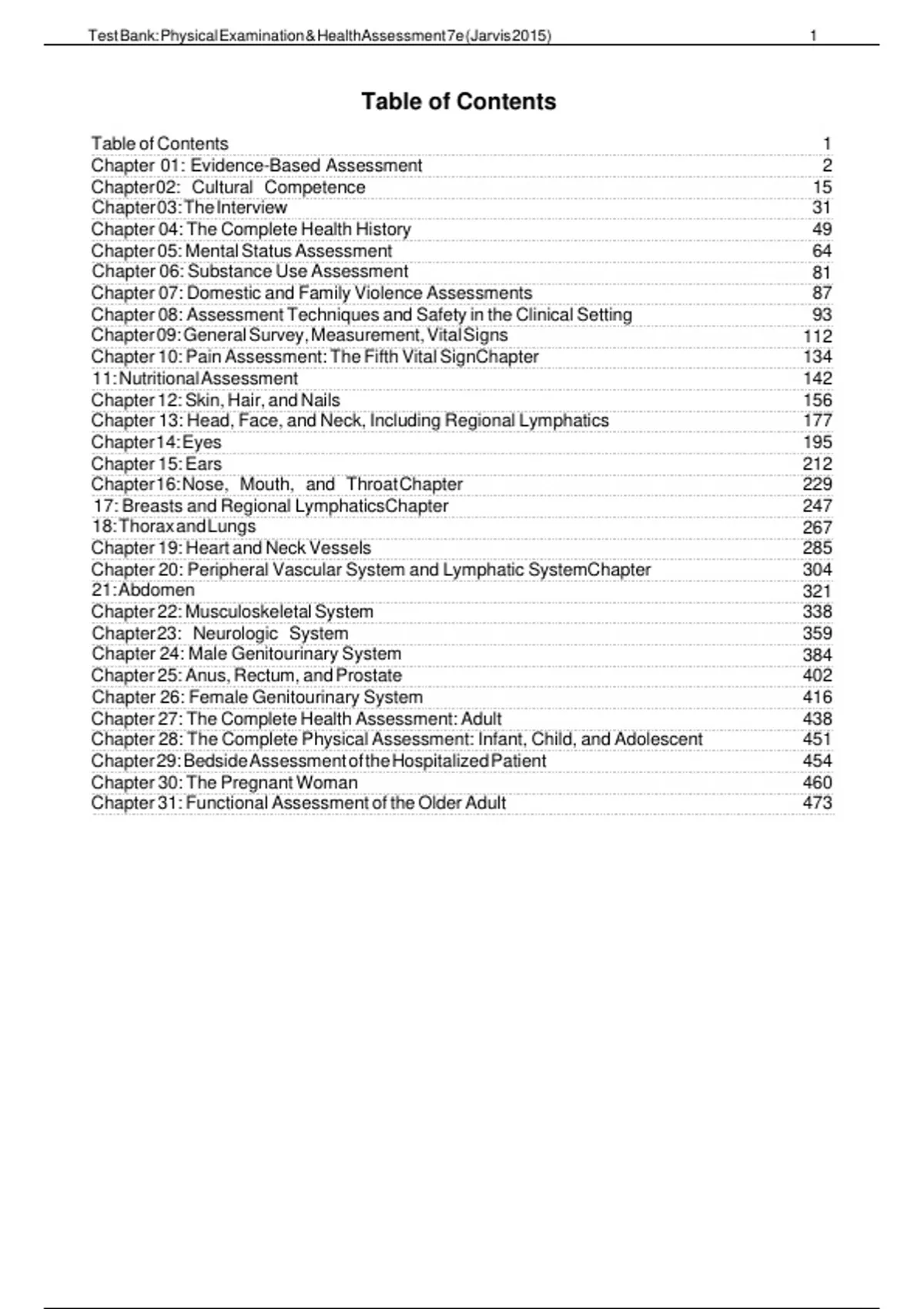, Test Bank: Physical Examination & HealthAssessment 7e (Jarvis 2015)
