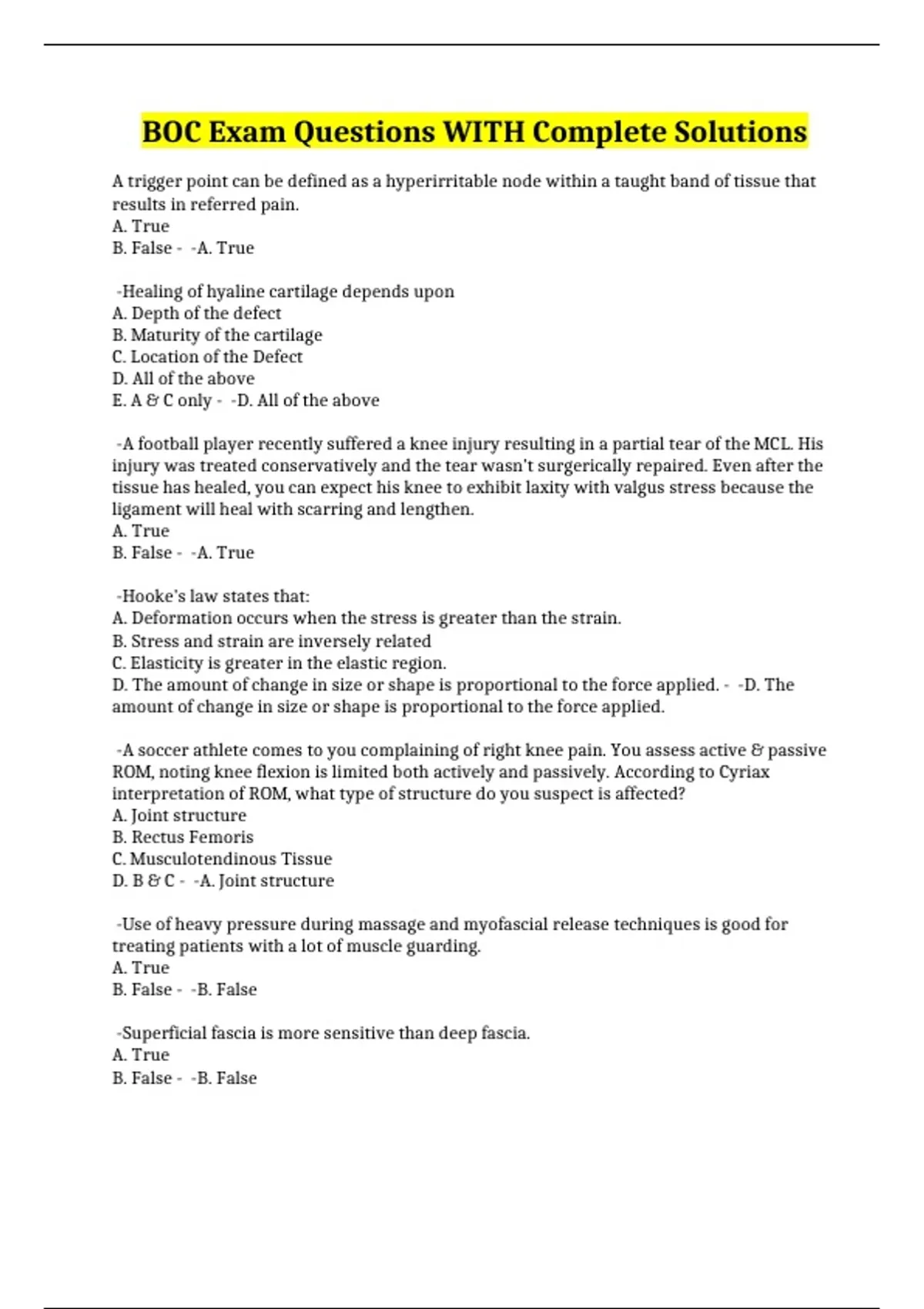 BOC Exam Questions WITH Complete Solutions