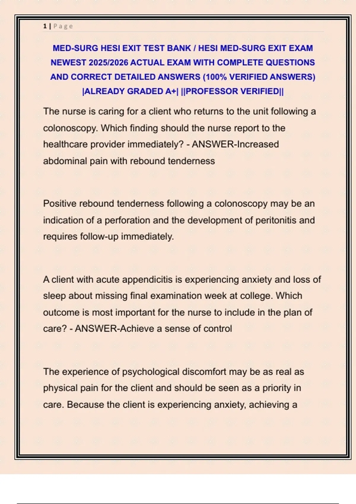 MED-SURG HESI EXIT TEST BANK / HESI MED-SURG EXIT EXAM