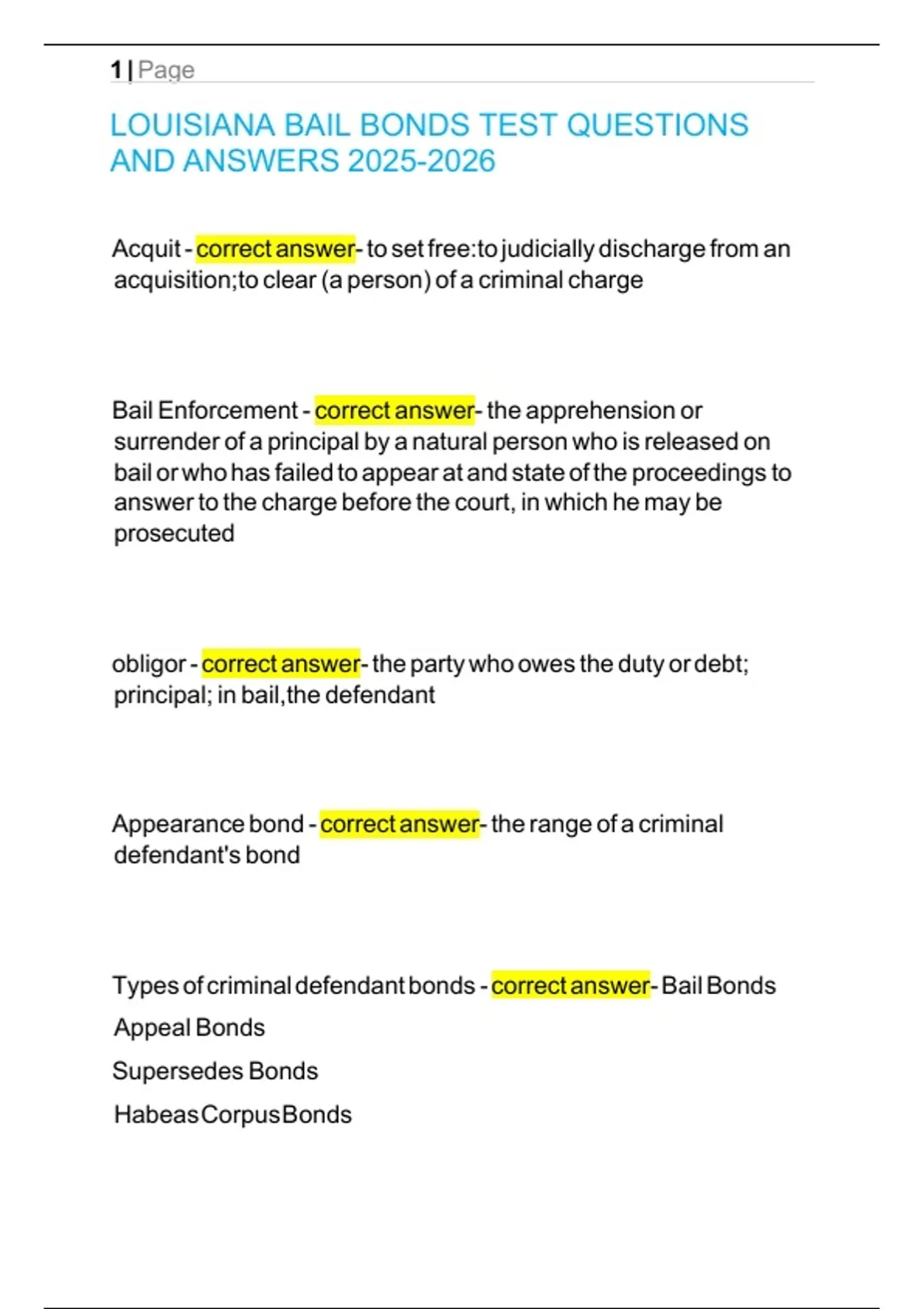 LOUISIANA BAIL BONDS TEST QUESTIONS