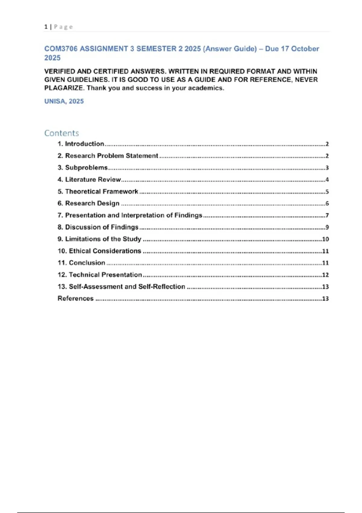 COM3706 ASSIGNMENT 3 SEMESTER 2 2025 (1) Questions with certified and verified answers