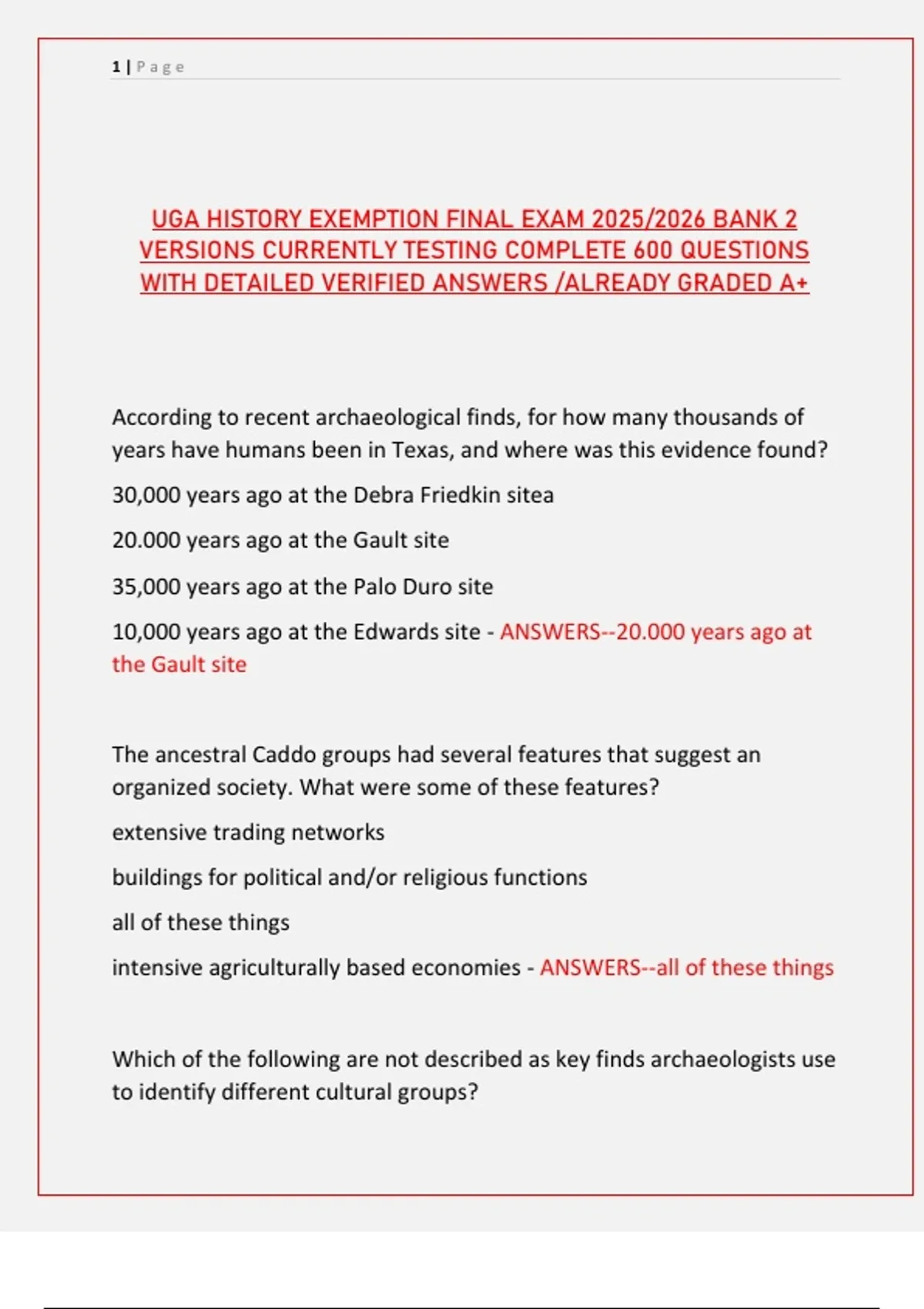 UGA HISTORY EXEMPTION FINAL EXAM 2025/2026 BANK 2