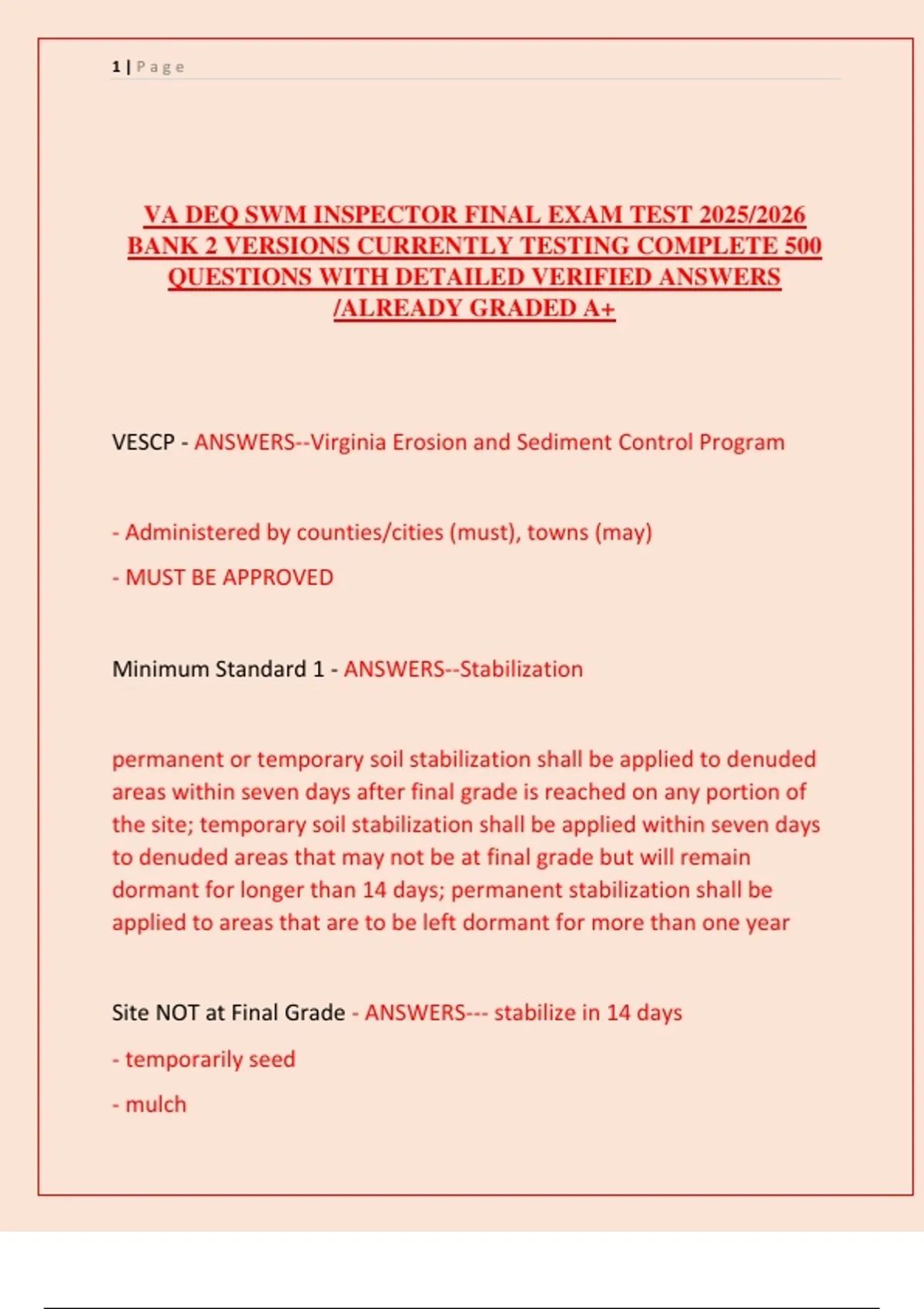 Minimum Standard 5 - ANSWERS--Earthen Structure Stabilization