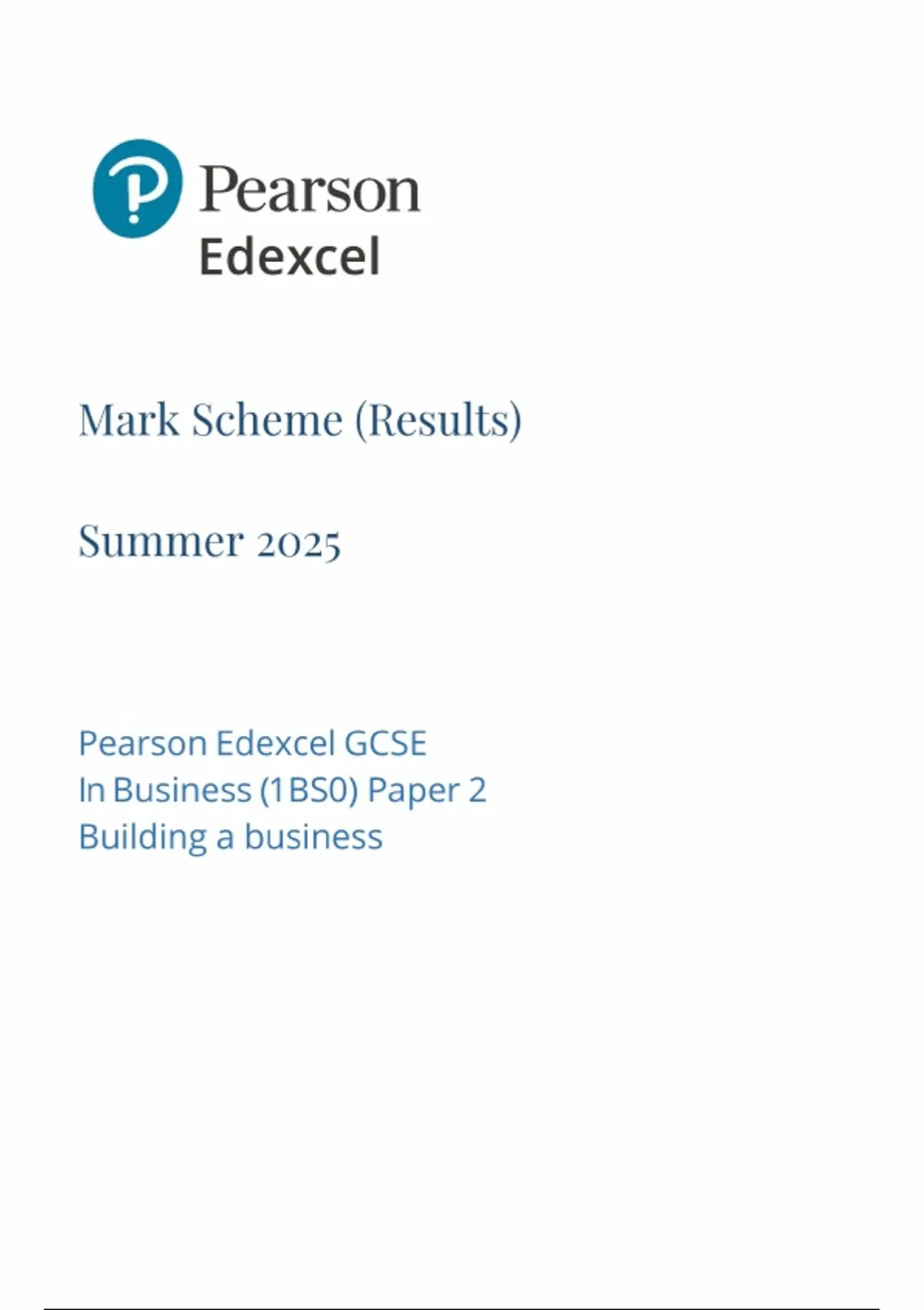 2025 Pearson Edexcel GCSE Business Paper 2 MARK SCHEME ; Building a business(1BS0