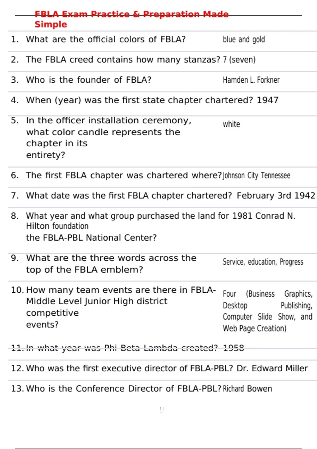 3. Who is the founder of FBLA? Hamden L. Forkner