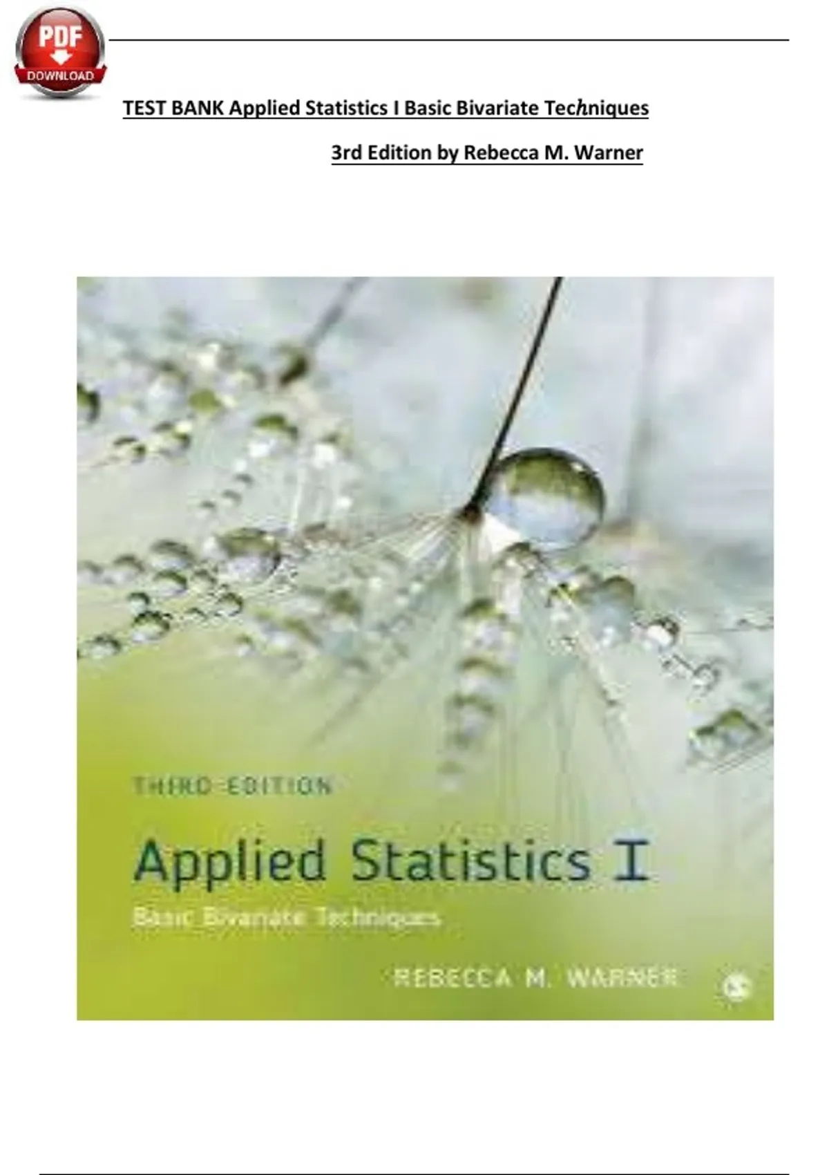 This comprehensive test bank covers Applied Statistics I: Basic Bivariate Techniques (3rd Edition) by Rebecca M. Warner, spanning all key topics in introductory bivariate statistics. It includes multiple-choice, true/false, and short-answer questions with verified answers, designed to support students in understanding frequency distributions, correlation, regression, hypothesis testing, and more. Ideal for exam prep and course review in statistics courses. applied statistics, bivariate techniques, Rebecca Warner, STAT210, test bank, introductory statistics, correlation, regression, data analysis, exam prep