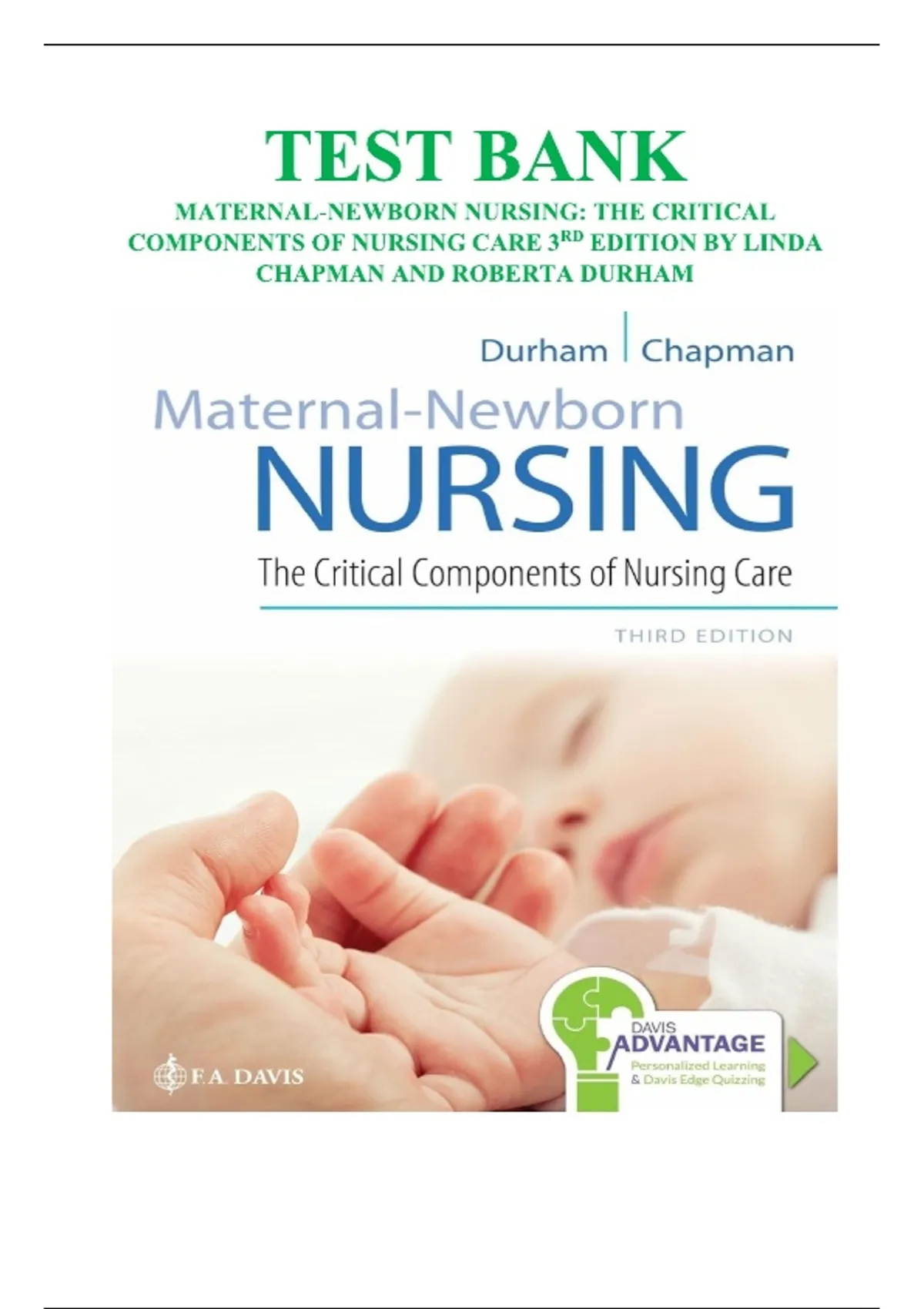 Test Bank: Maternal-Newborn Nursing: The Critical Components of Nursing Care, 3e (Durham & Chapman). Complete ALL Chapters Q&A with Detailed Rationales. Perfect for passing your OB exams and mastering Maternal-Newborn Trends, Mortality Rates, and Safe Infant Care.