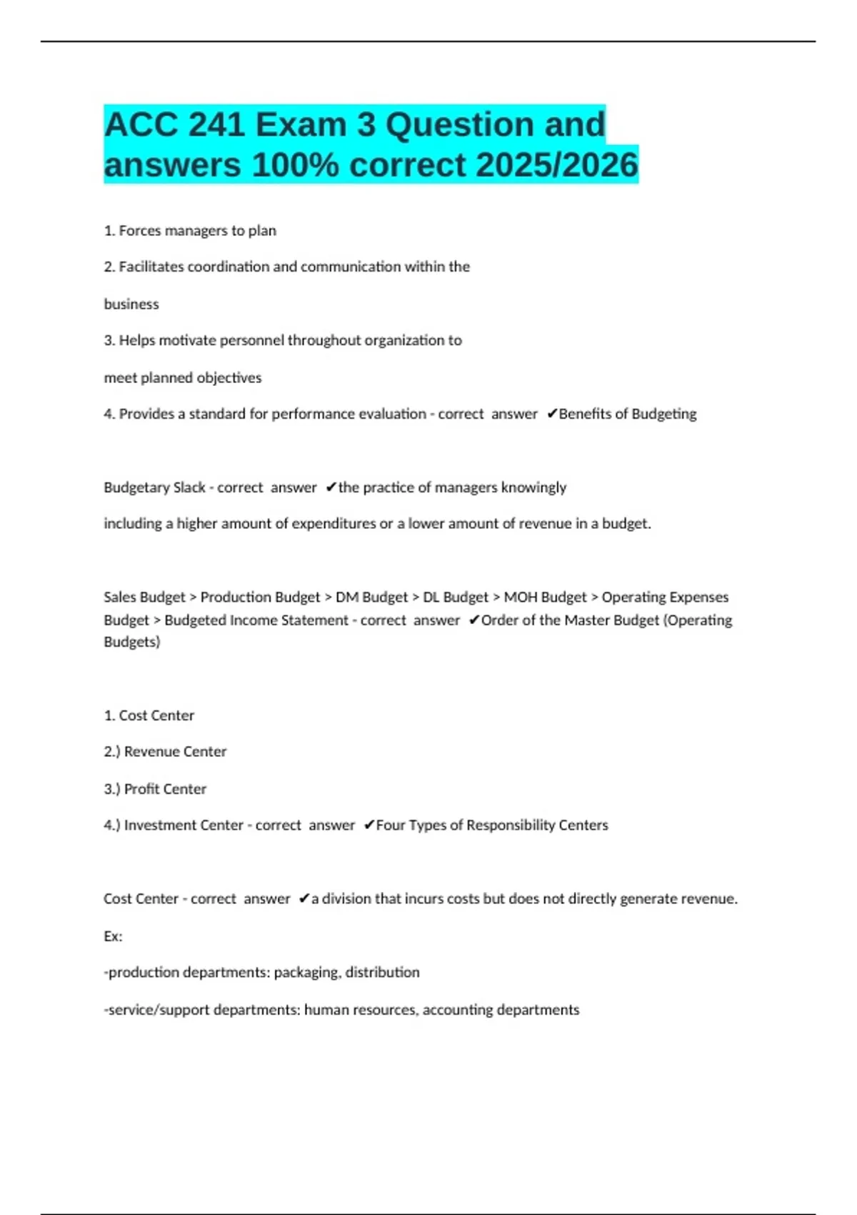 Cost Center - correct answer ✔a division that incurs costs but does not directly generate revenue.