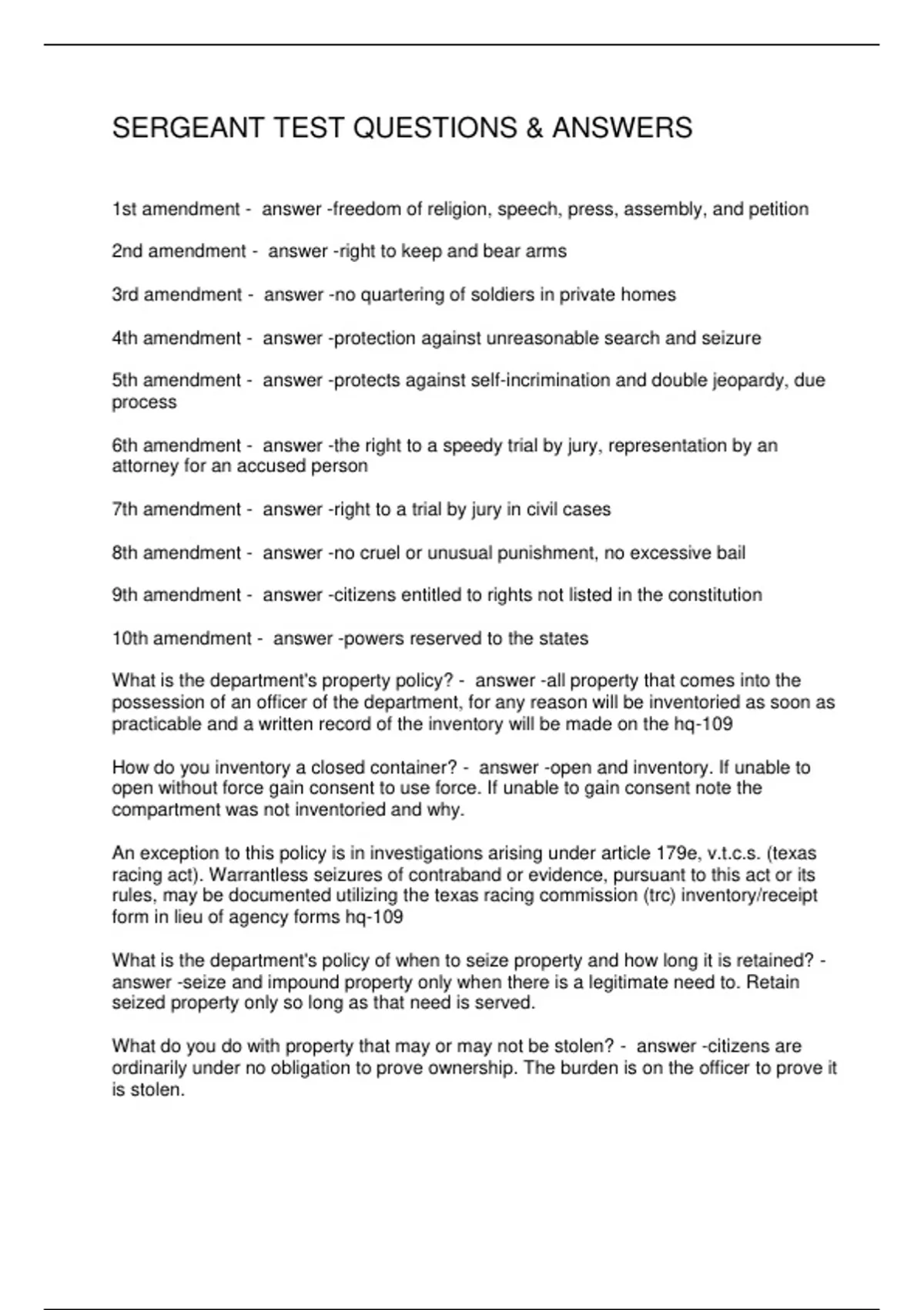 SERGEANT TEST QUESTIONS & ANSWERS