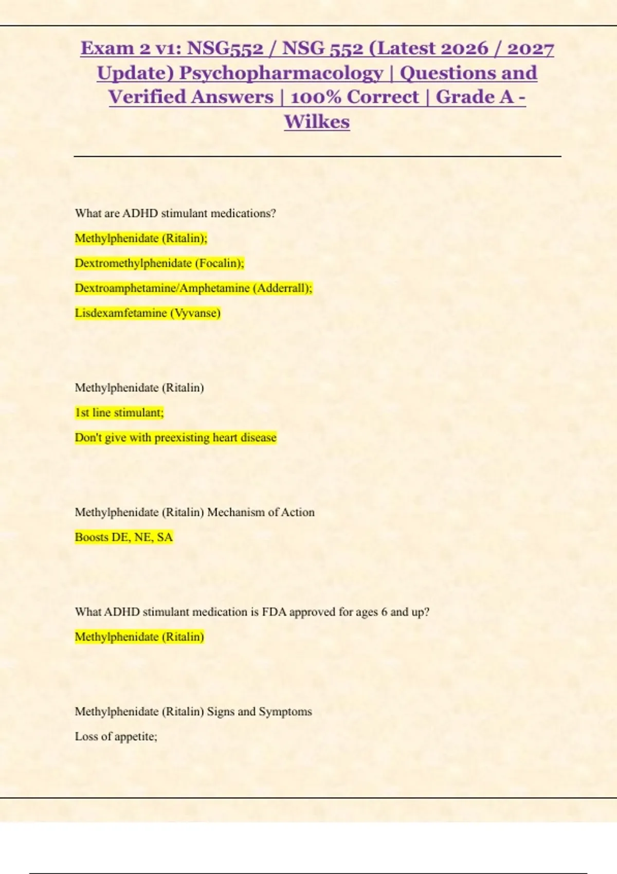 Exam 1 v1: NSG552 / NSG 552 (Latest 2026 / 2027 Update) Psychopharmacology | Questions and Verified Answers | 100% Correct | Grade A - Wilkes
