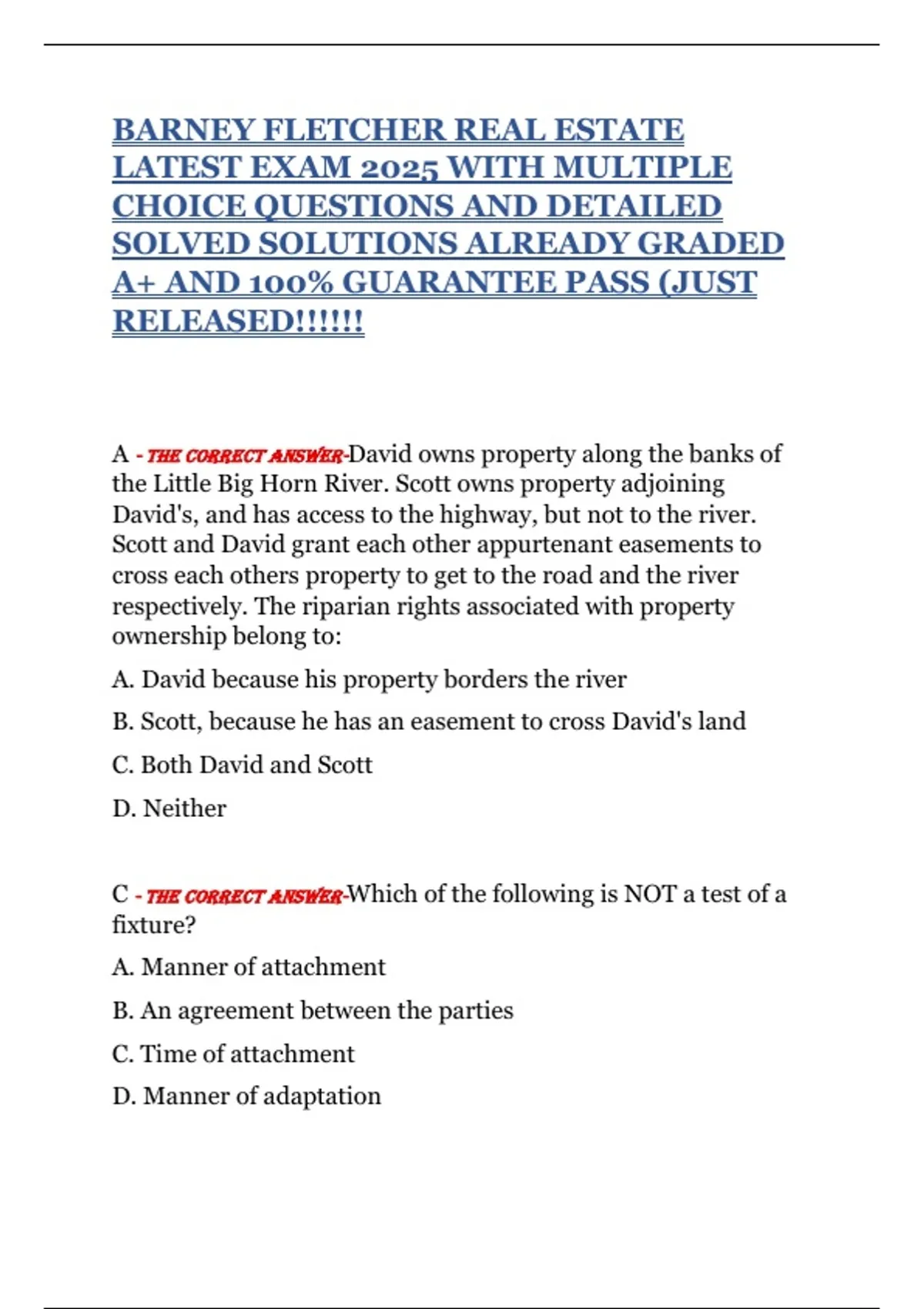 A - THE CORRECT ANSWER-David owns property along the banks of