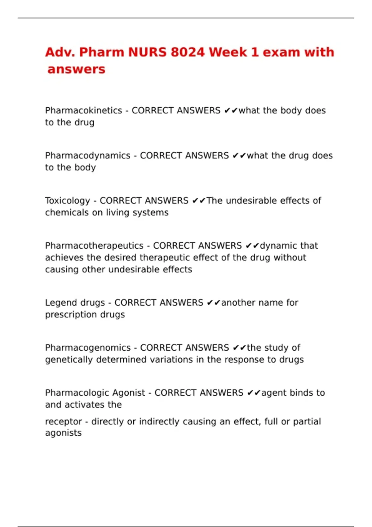 Adv. Pharm NURS 8024 Week 1 exam with answers
