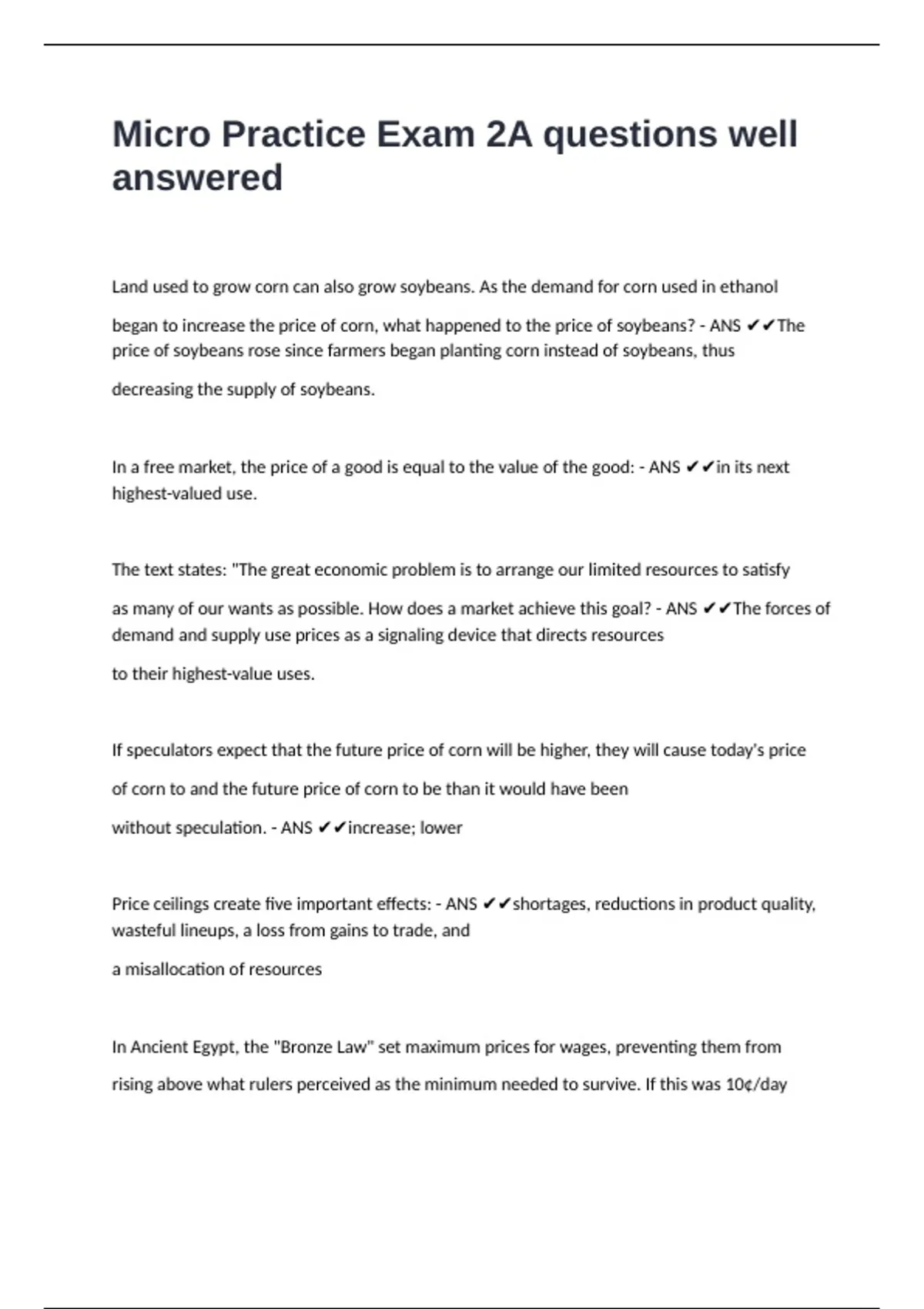 Micro Practice Exam 2A questions well