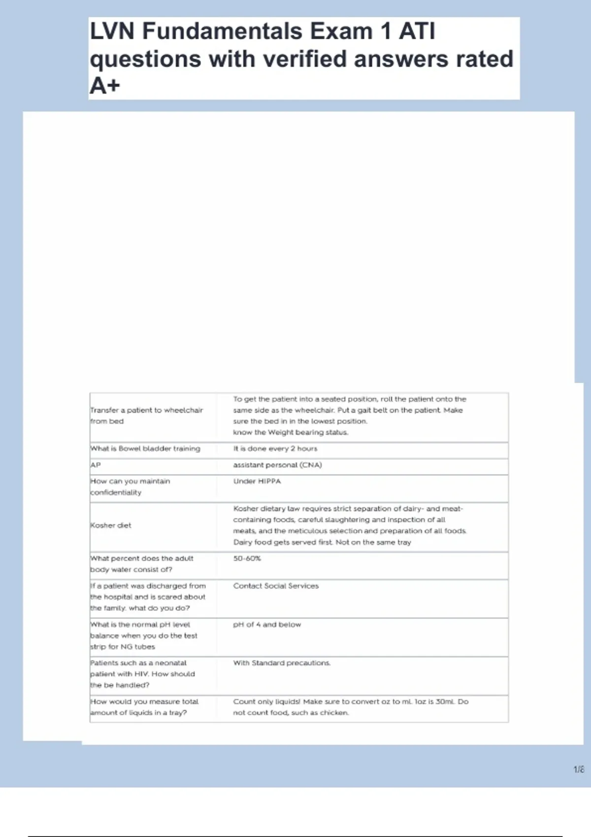 LVN Fundamentals Exam 1 ATI questions with verified answers rated A+