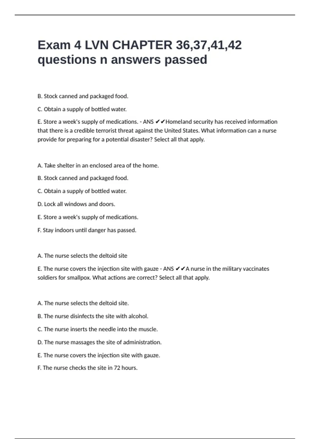 E. The nurse covers the injection site with gauze - ANS ✔✔A nurse in the military vaccinates