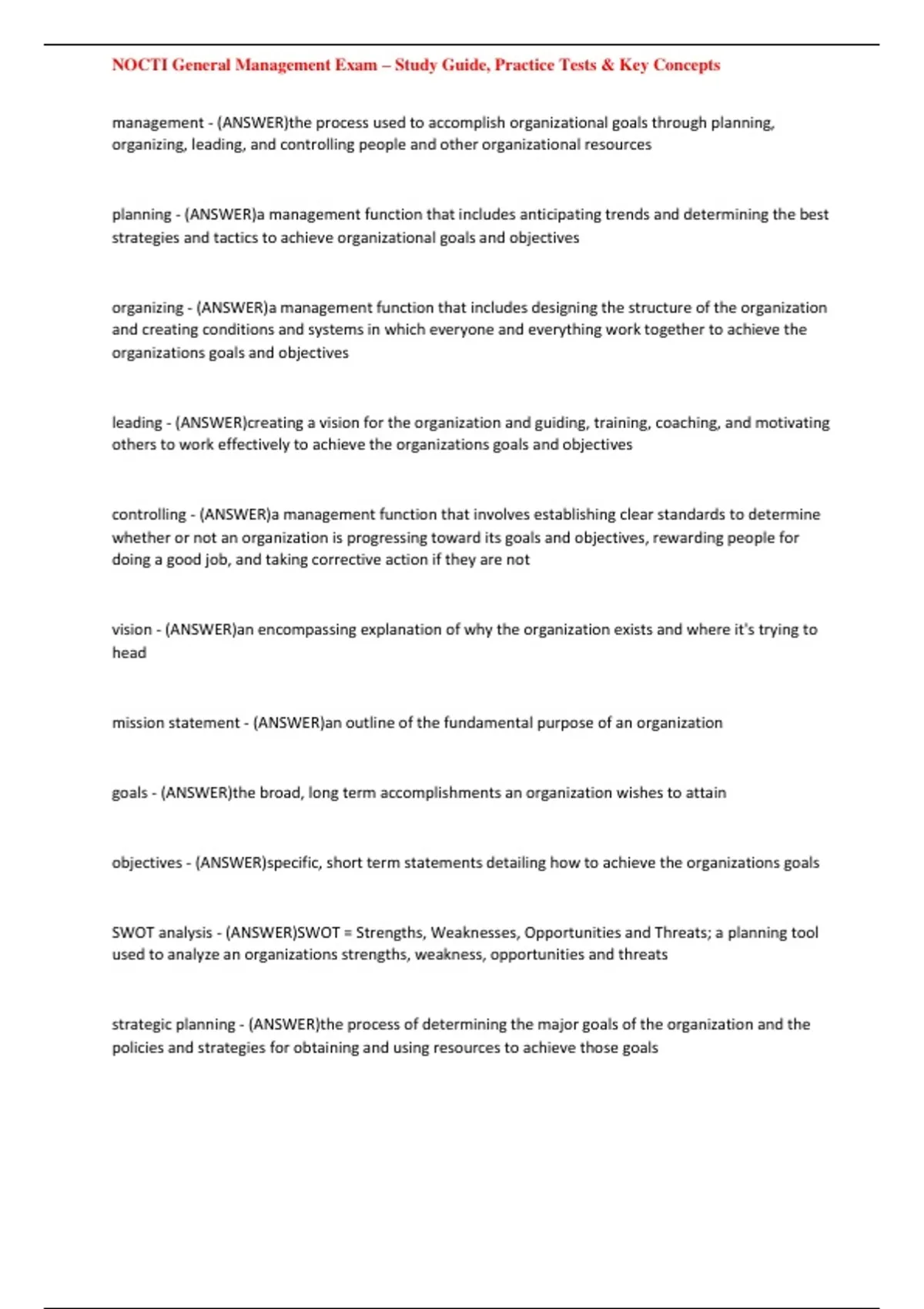 ,NOCTI General Management Exam – Study Guide, Practice Tests & Key Concepts