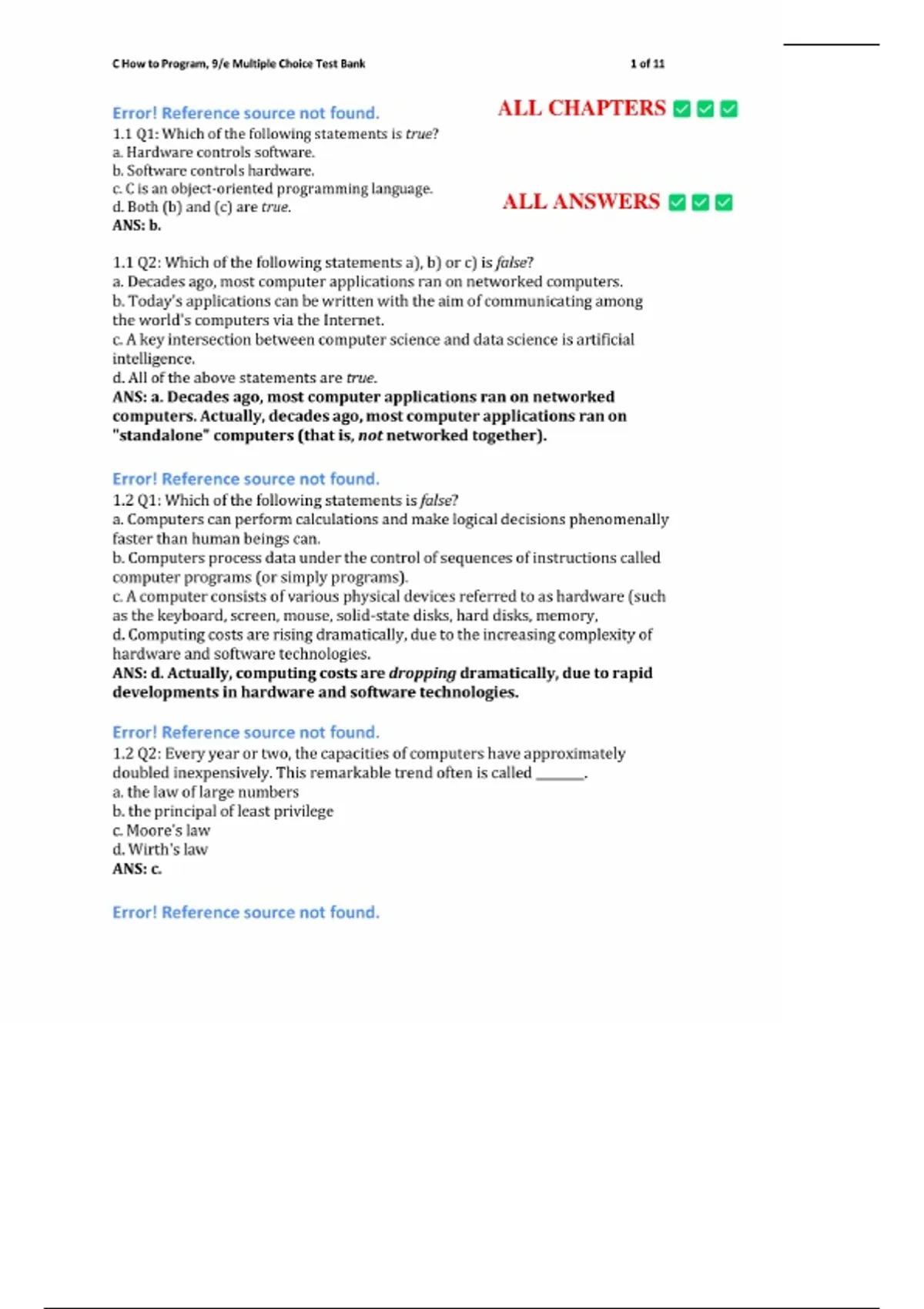 Test Bank for C How to Program (9th Edition) – Paul Deitel & Harvey Deitel | Chapters 1–15 Included