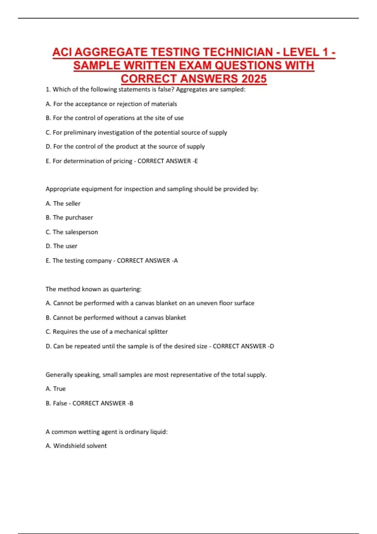 CORRECT ANSWERS 2025