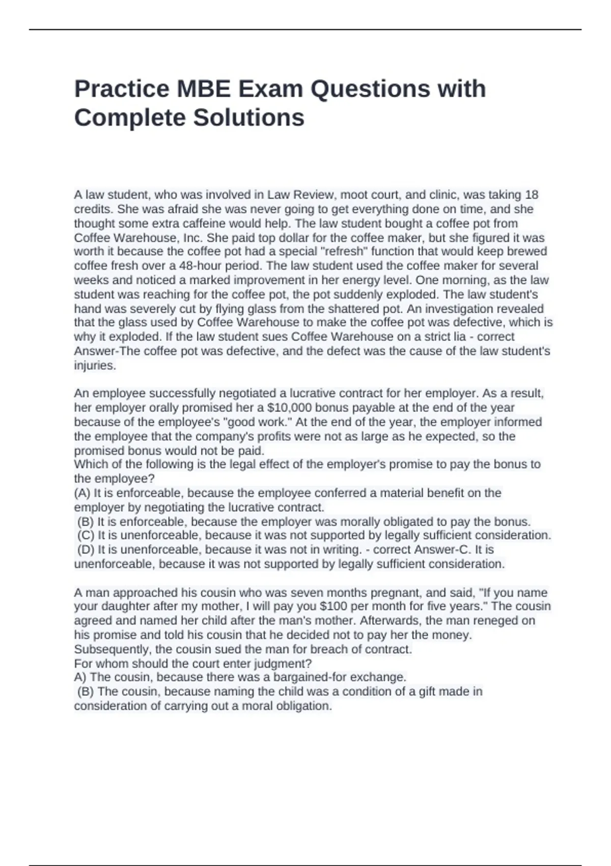 Practice MBE Exam Questions with