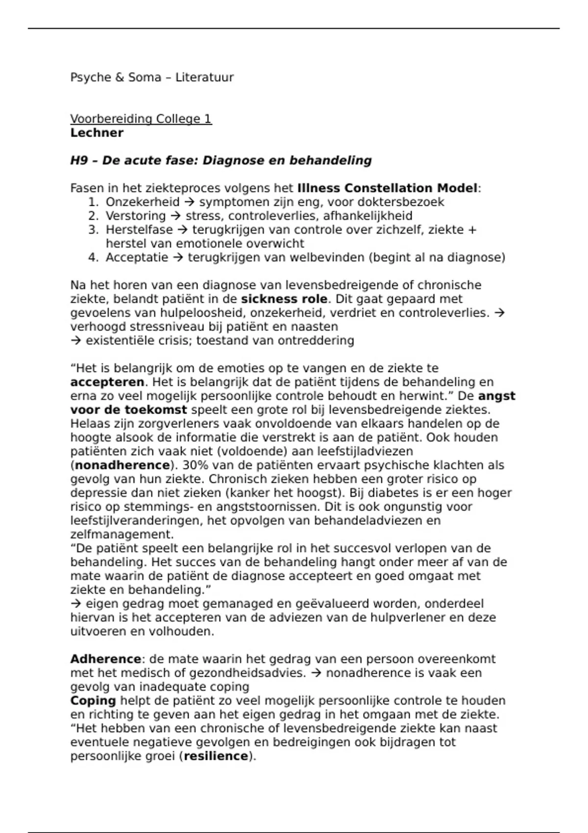 Samenvatting literatuur Psyche & Soma (P_MPSYSOMA)