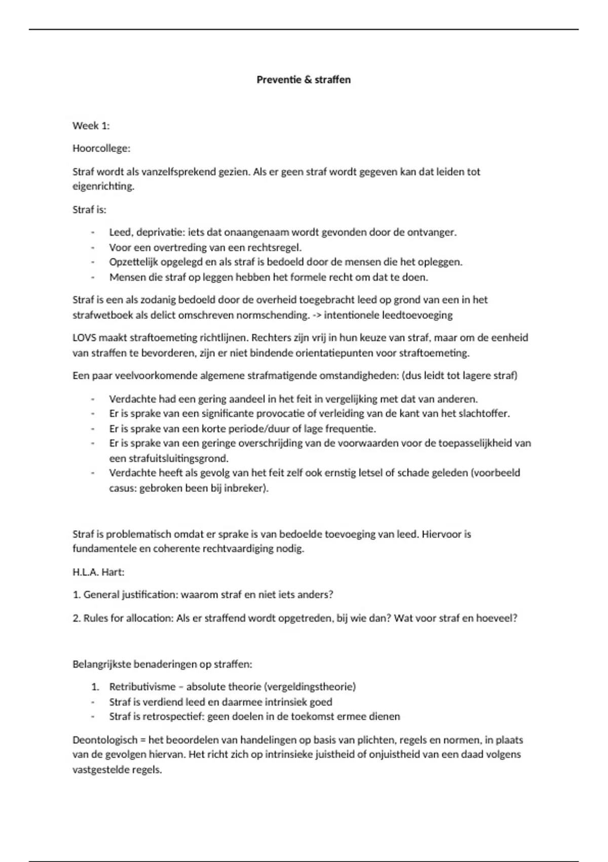 - Geen algemene rechtvaardiging voor straf, er is alleen een limiterende werking op uitdelen